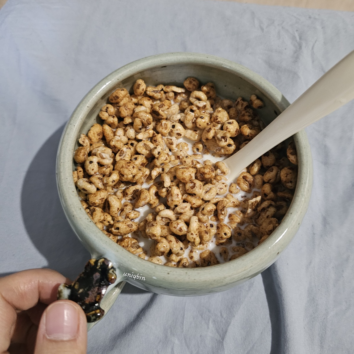 오늘은 조리퐁에 소화잘되는 매일우유를 말아보니 그나마 고소한맛은 느낄 수 있었어요. 단맛은 많이 빠졌지만요. 근데 목이 껍질이 붙어서 묘하게 아픕니다.