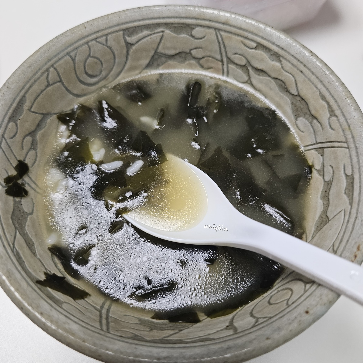 간없는 미역국은 역한맛이지만 엄마가 쌀뜨물과 고기넣고 끓이신거라 영양을 생각해서 꾸역꾸역 넣습니다.