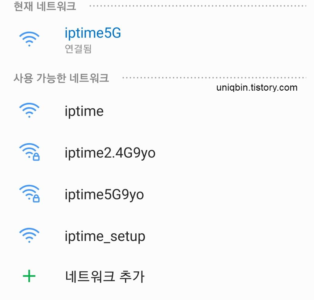 그러면 폰에서 이렇게 iptime 와이파이가 죄다 떠요.