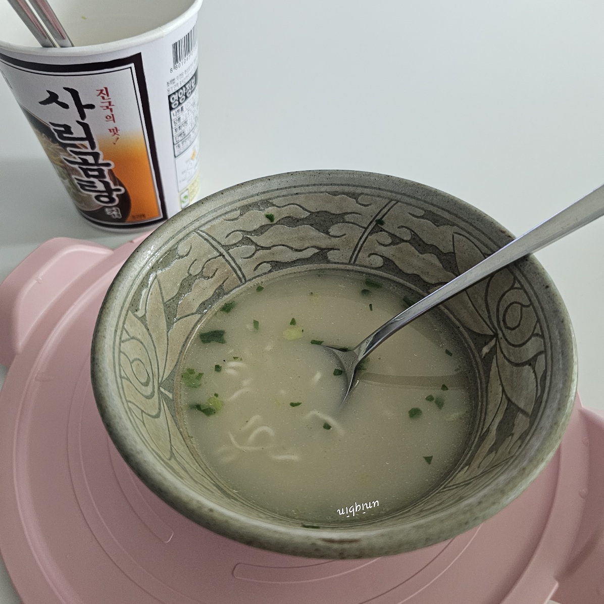 안맵다는 사리곰탕 국물위주로 먹어봤는데 혀끝에 후추맛같달까 느껴져서 그릇의 반정도먹고나서