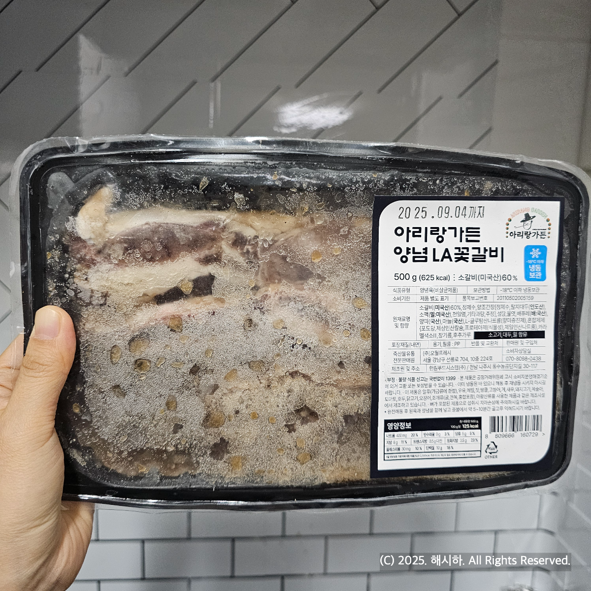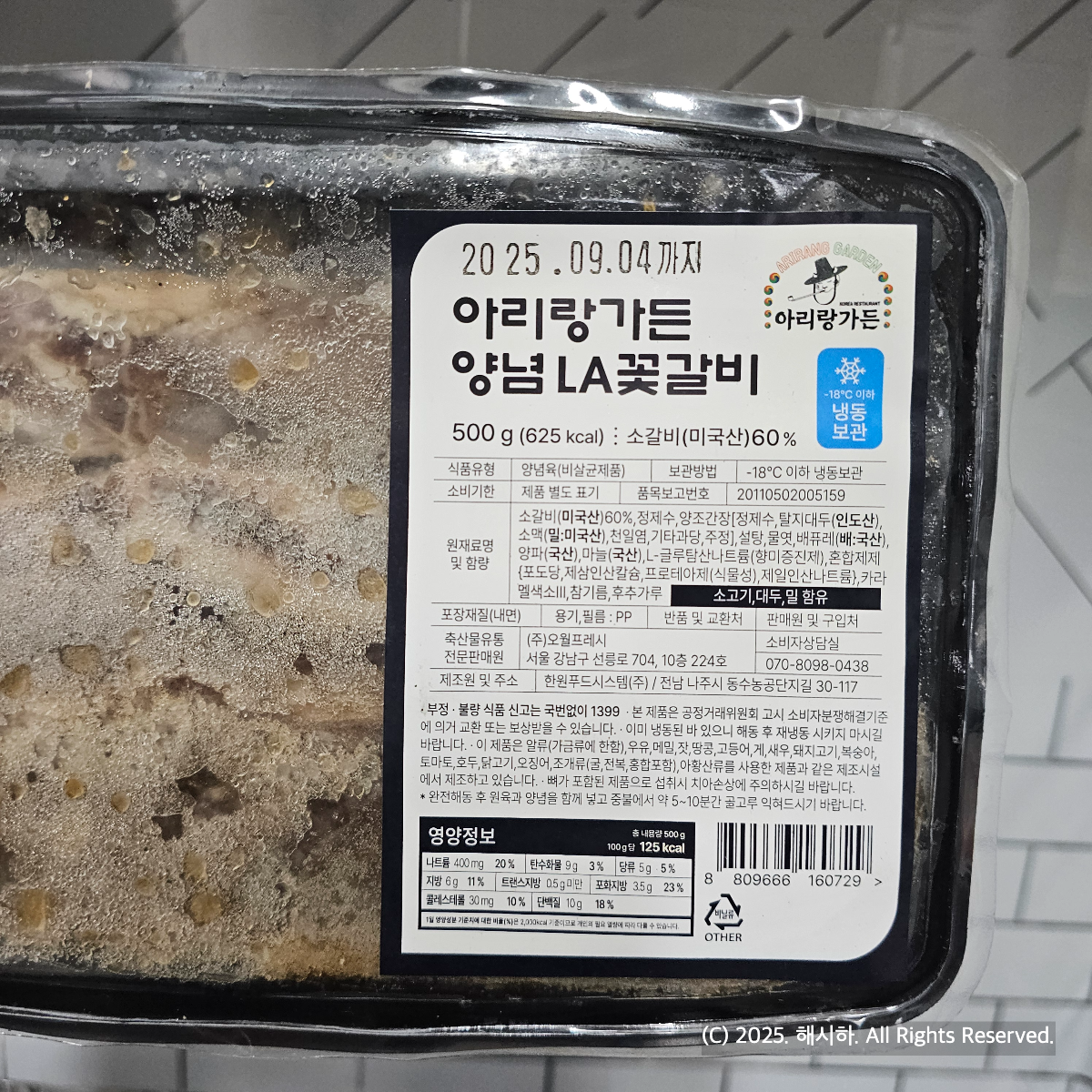 아리랑가든 양념 LA 꽃갈비 500g 625칼로리로 미국산 소갈비인데 22,900원에서 세일가로 19,300원대에 팔기도 해요.