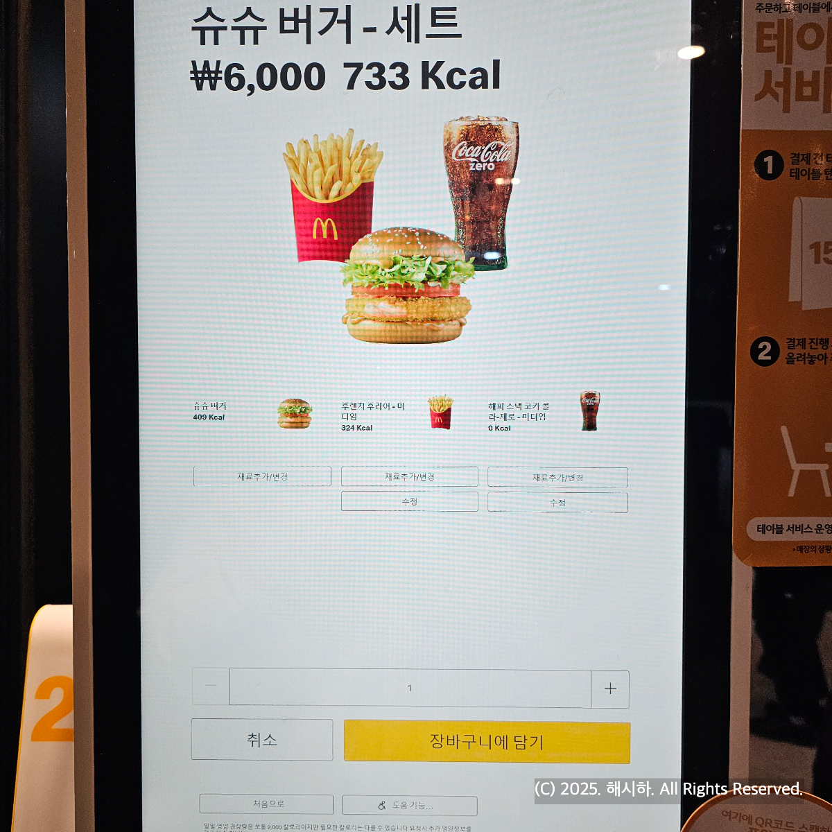 그러다가 대기를 보니 포장해가기로 한 남편의 햄버거세트도 바로 주문해야 할 것 같아서 거의곧바로 주문했어요.