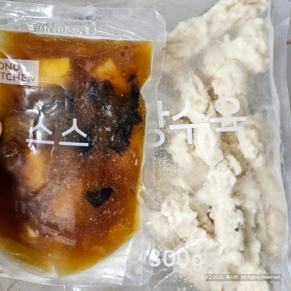 모노키친 베이징풍 탕수육 구성은 이렇게 소스와 탕수육으로 구성되어있는데 냉동이구요.