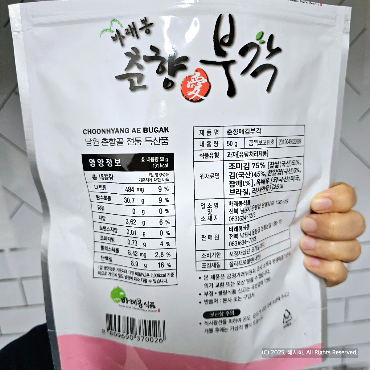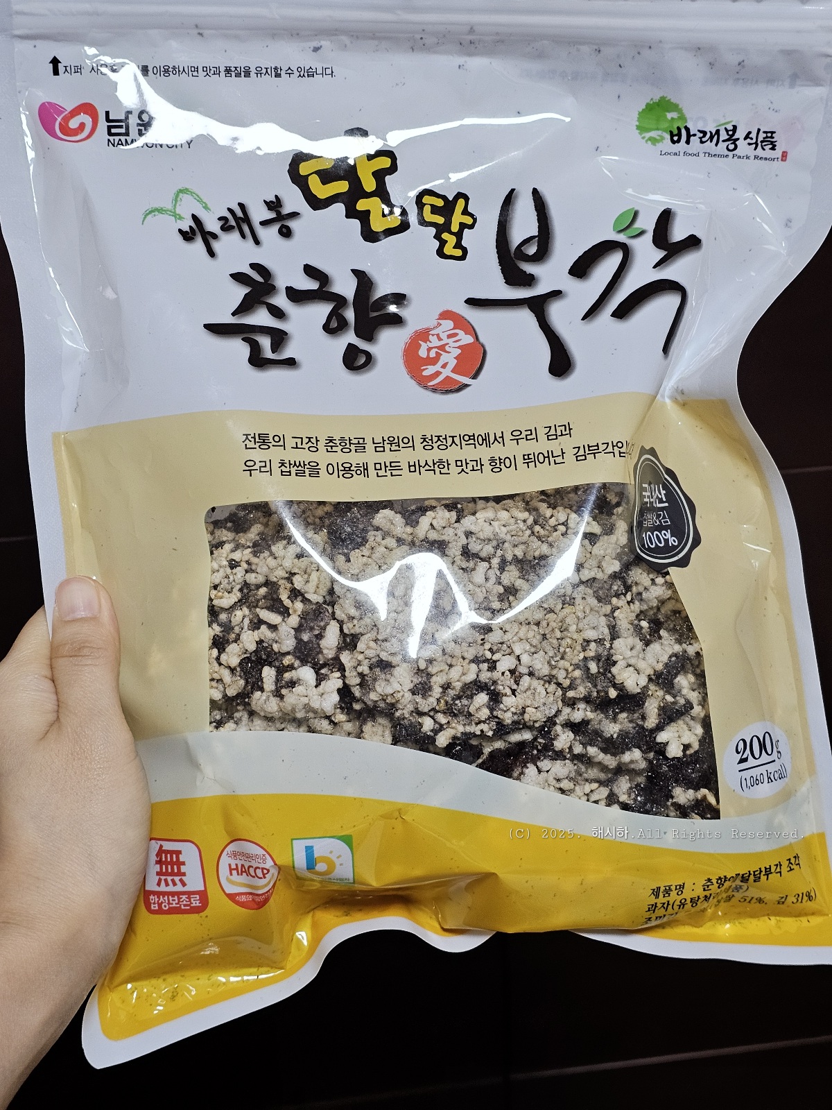 전통의 고장 춘향골 남원의 청정지역에서 우리김과 우리찹쌀을 이용해 만든 바삭한 맛과 향이 뛰어난 김부각이래요.