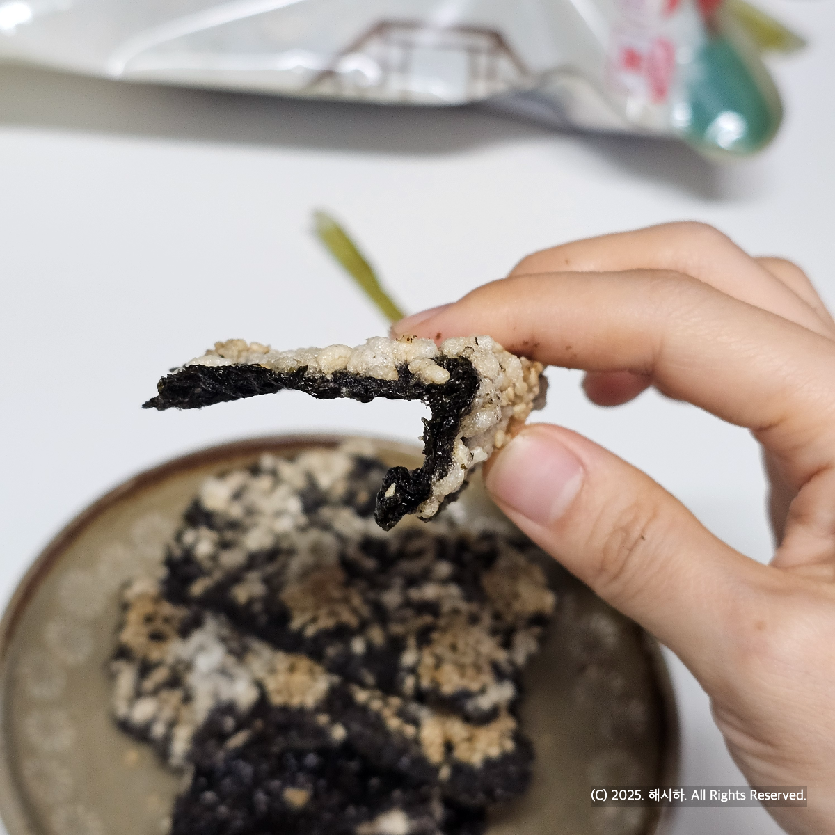 그래도 이상하게 이게 좀더 덜 질리고 좋을 것 같아서 샀는데, 집에 아이가 있다면 아주조금 더 미세하게 단맛이 있는 달달한 버전의 김부각도 추천드려요.