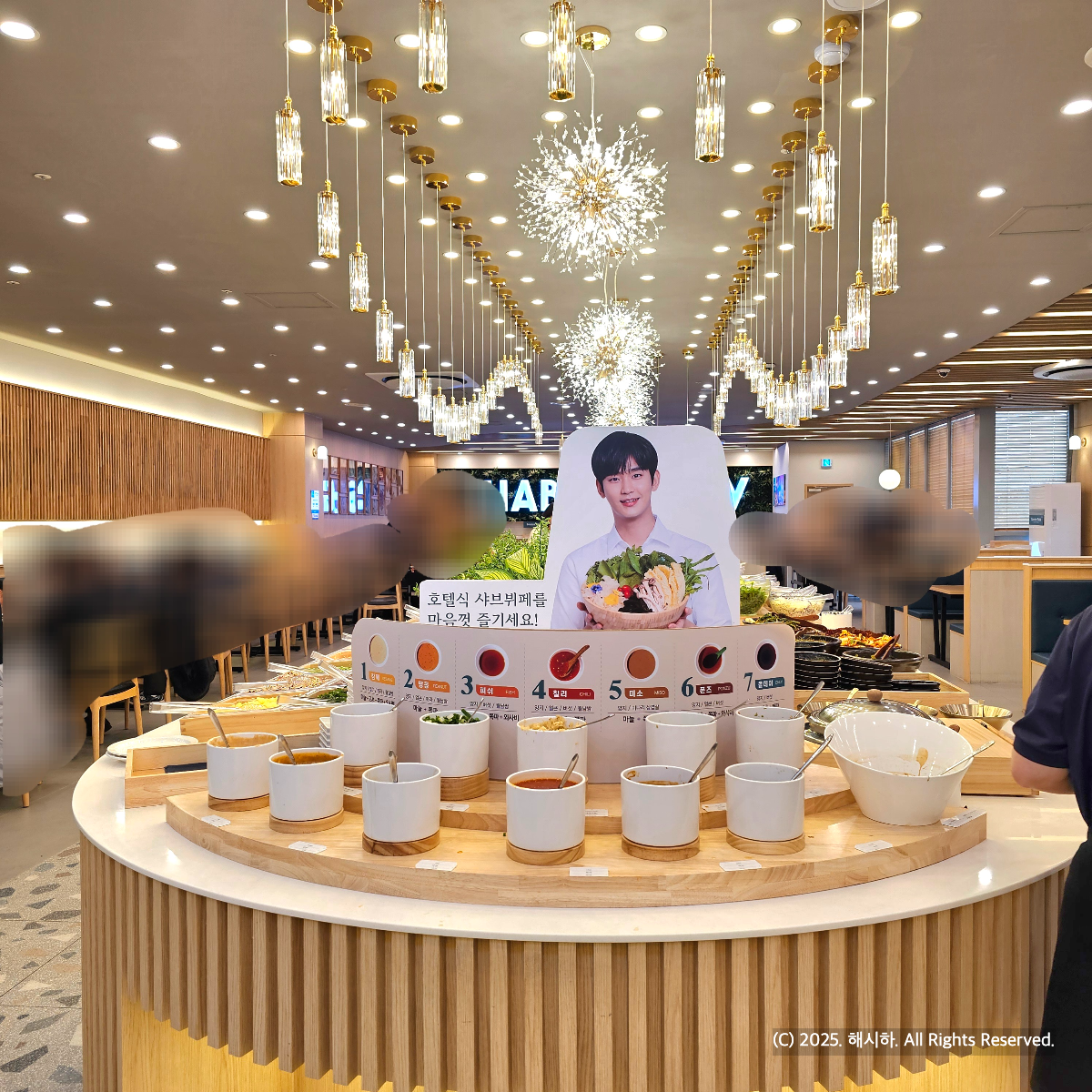 저희 자리 바로 옆에는 고기들 2접시씩 무제한으로 갖다먹었는데 한 4접씨 먹은 것 같고, 고기질은..좀 질기긴했어요.