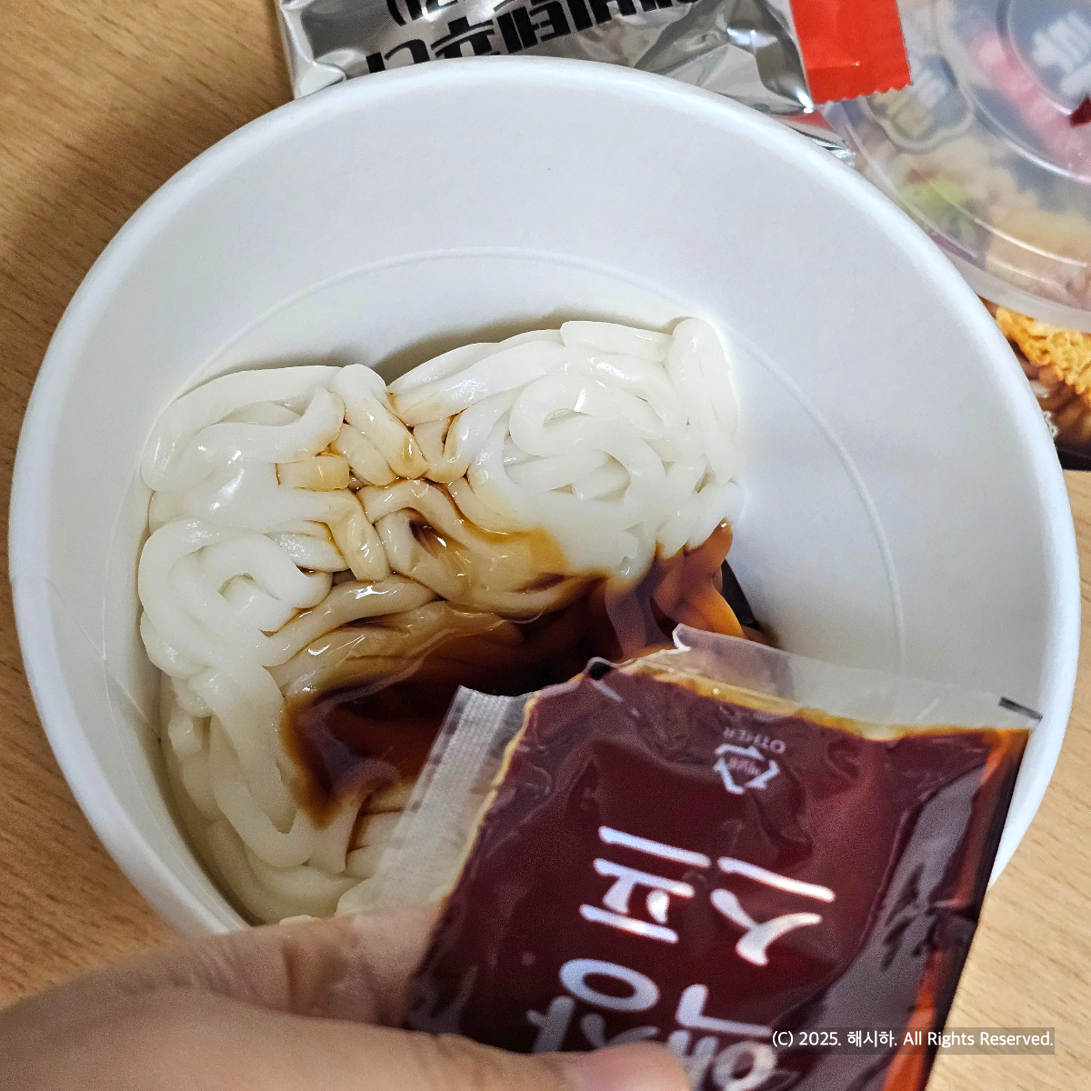 안그래도 쫀득한 면에 전자렌지에서 익히니 더욱 어쩔 수 없는 식감같아요.