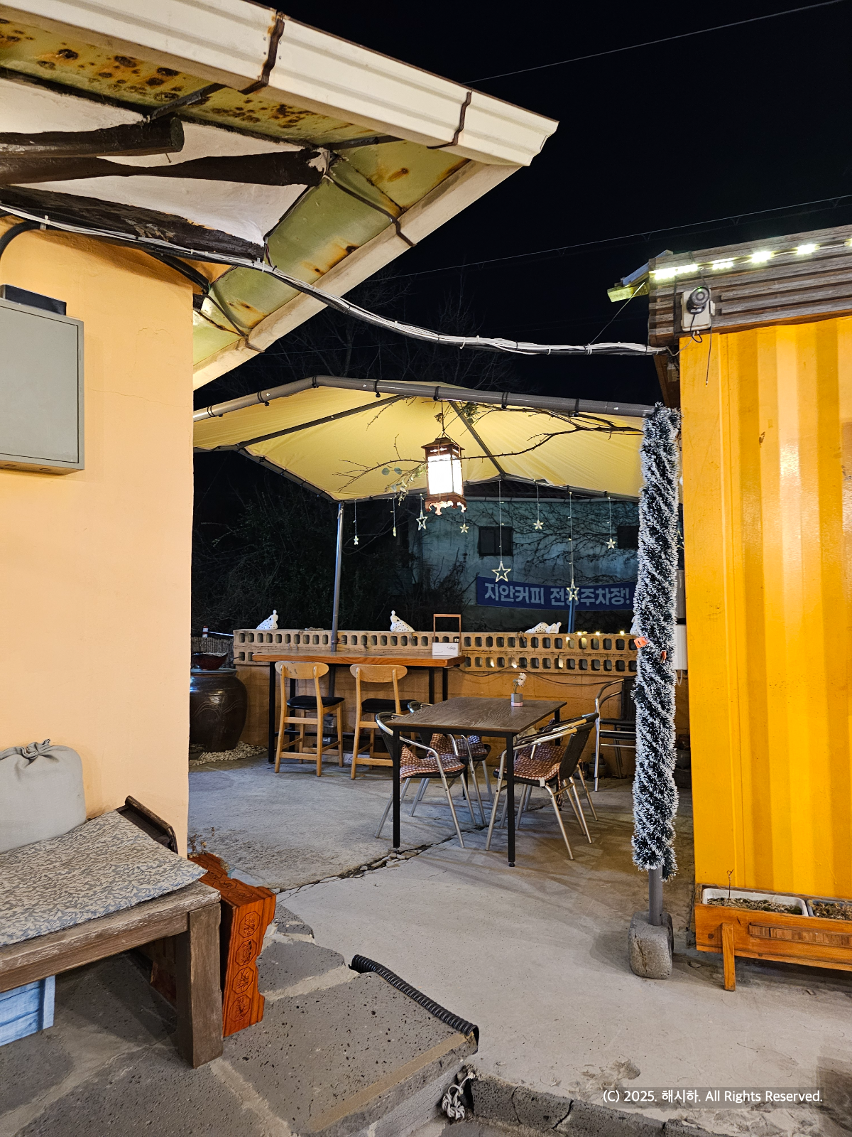 여기 이 공간 옆에 저 오른쪽 노란 컨테이너 별채는 단체손님용인거 같았어요. 저희가 옆에 머물렀거든요.