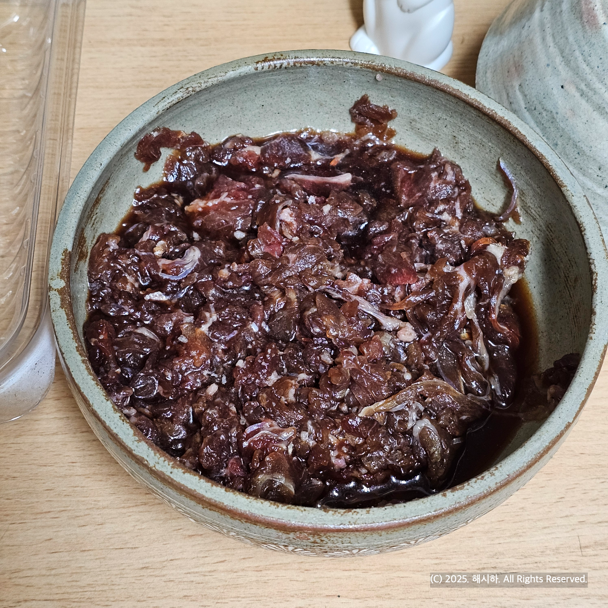 특히 전날 해동해야 하는 이유는 불고기때문인데, 키친타월에 핏기제거에다가 양념에 30분정도 절여야 하더라구요.