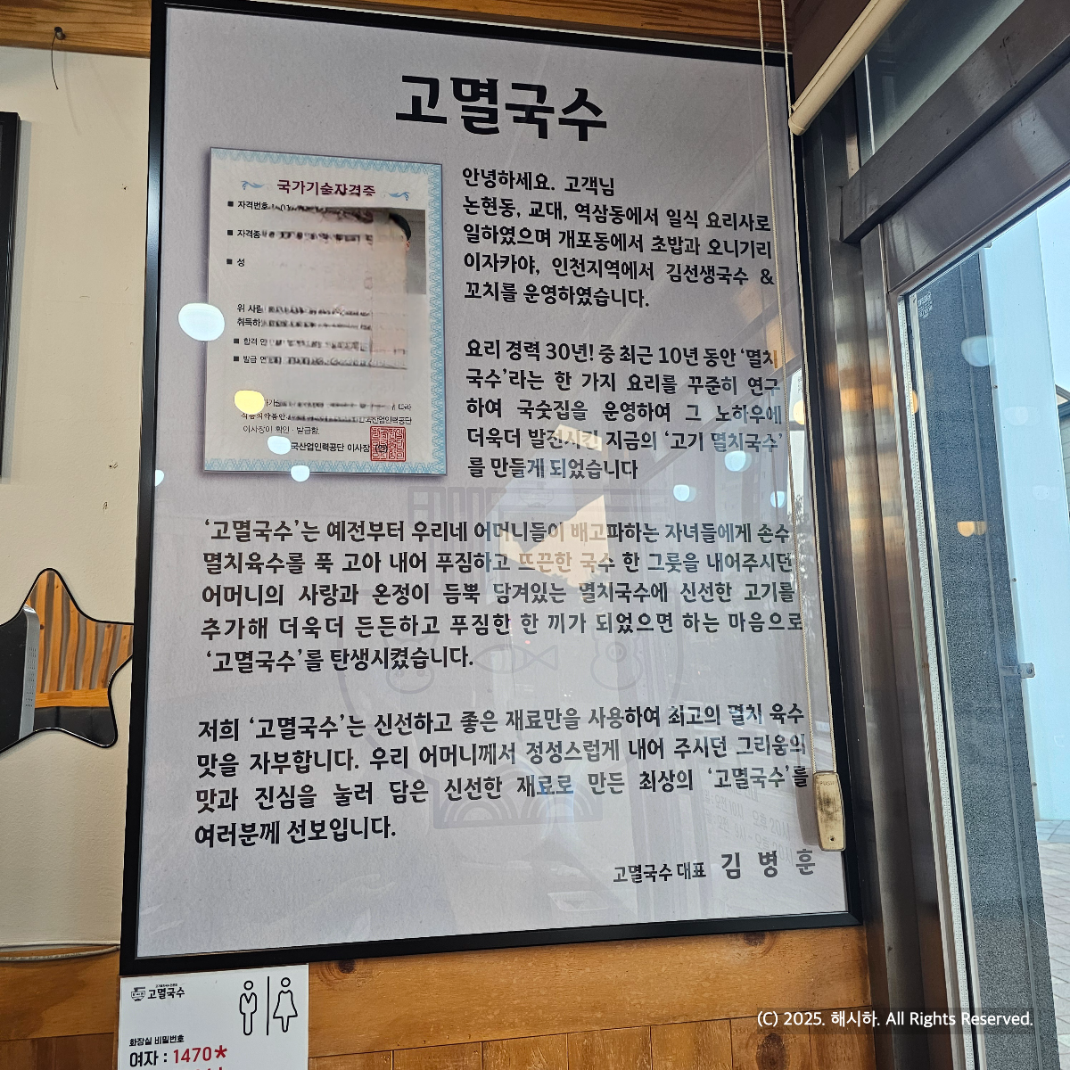 입구부터 고멸국수 대표님의 경력과 다짐이 묻어난 글이 보여서 읽어보았고, 주문을 해보기로해요.