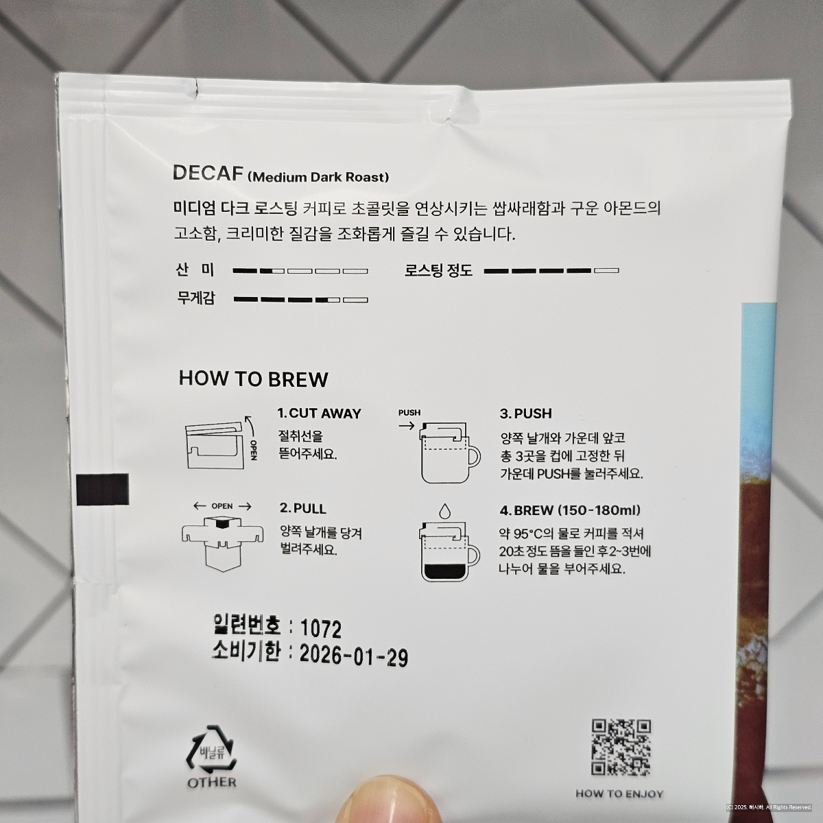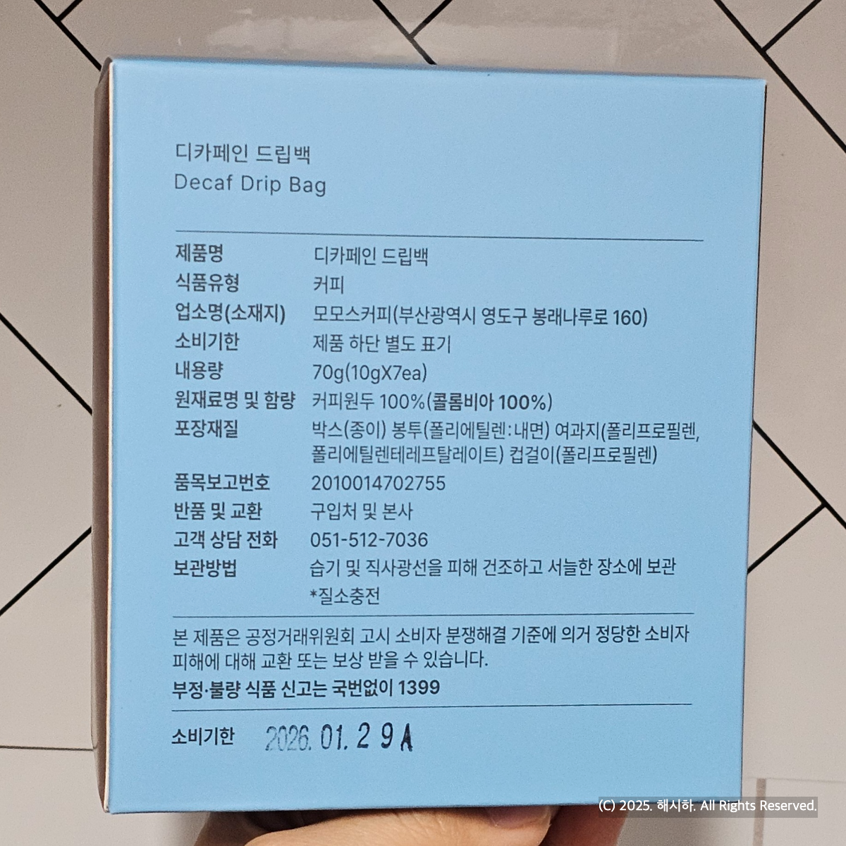 그 덕분에 카페인 걱정없이 마실 수 있는 디카페인 커피 드립백이래요.