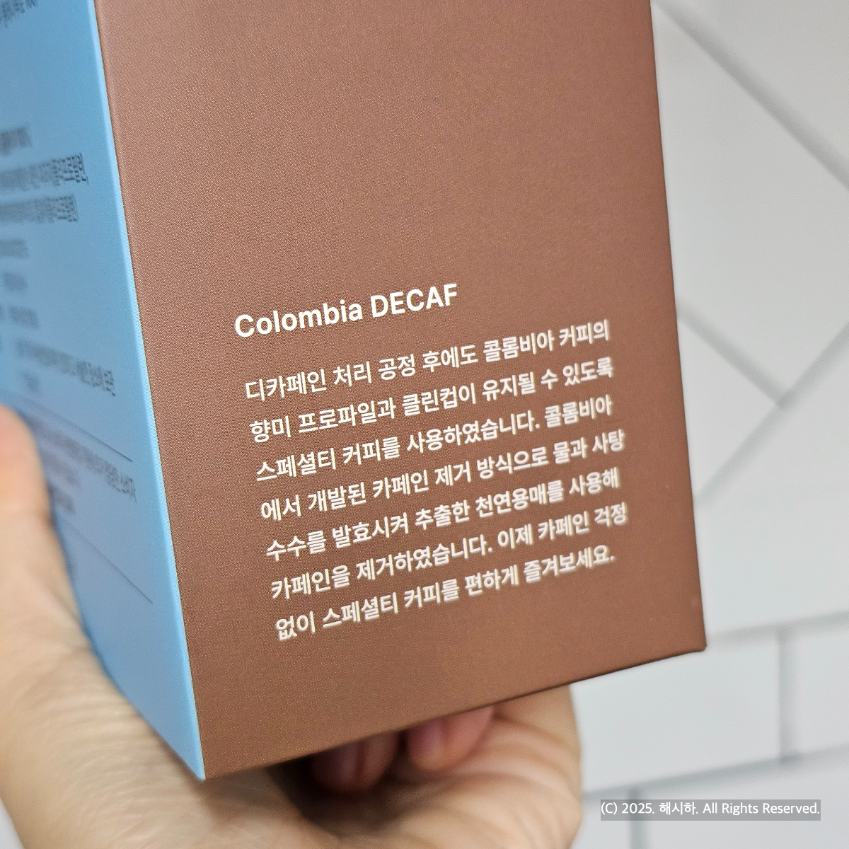 디카페인 처리 공정 후에도 콜롬비아 커피의 향미 프로파일과 클린컵이 유지 될 수 있도록 스페셜티 커피를 사용하였대요.