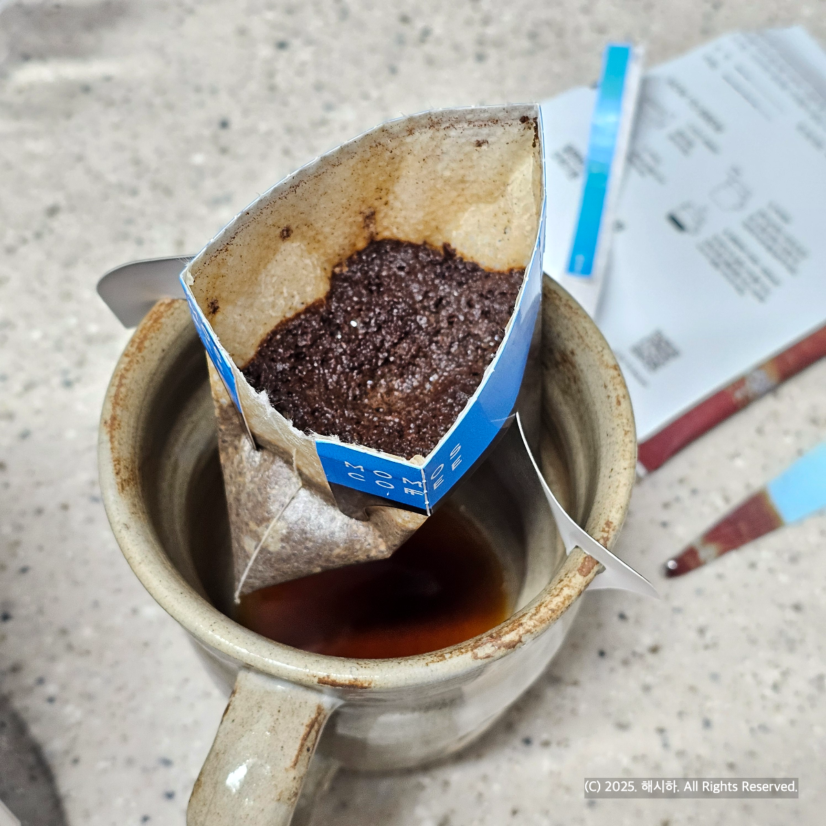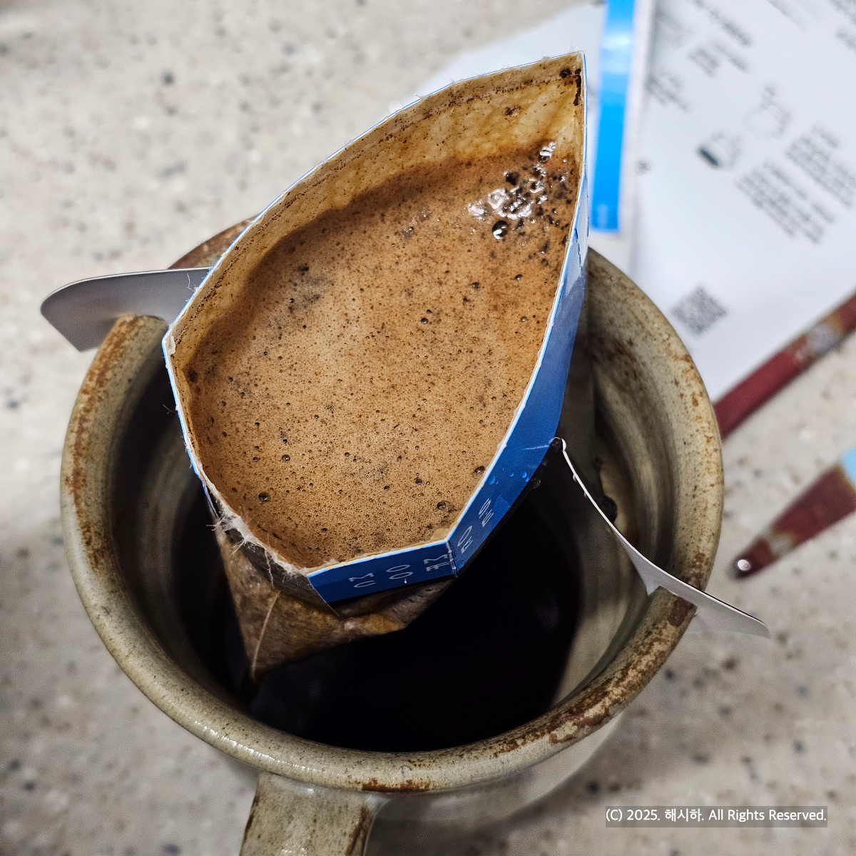 평소에 먹던 드립백과는 거는 방식이 좀 다르고 독특한데 금방 적응했구요~