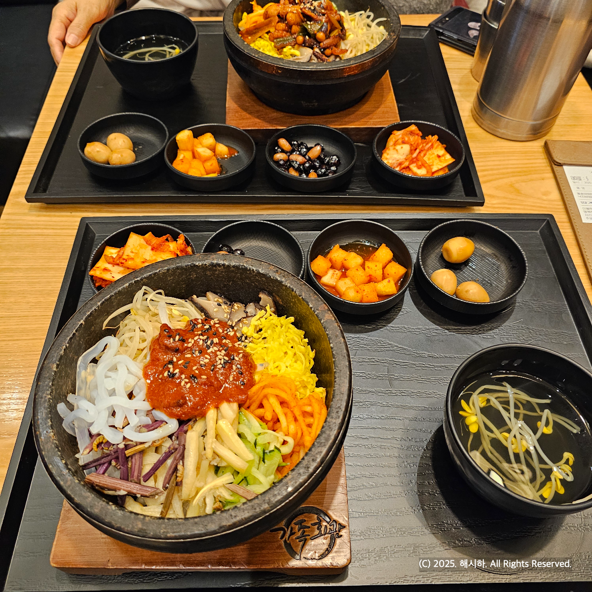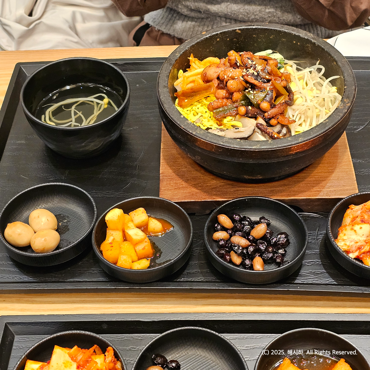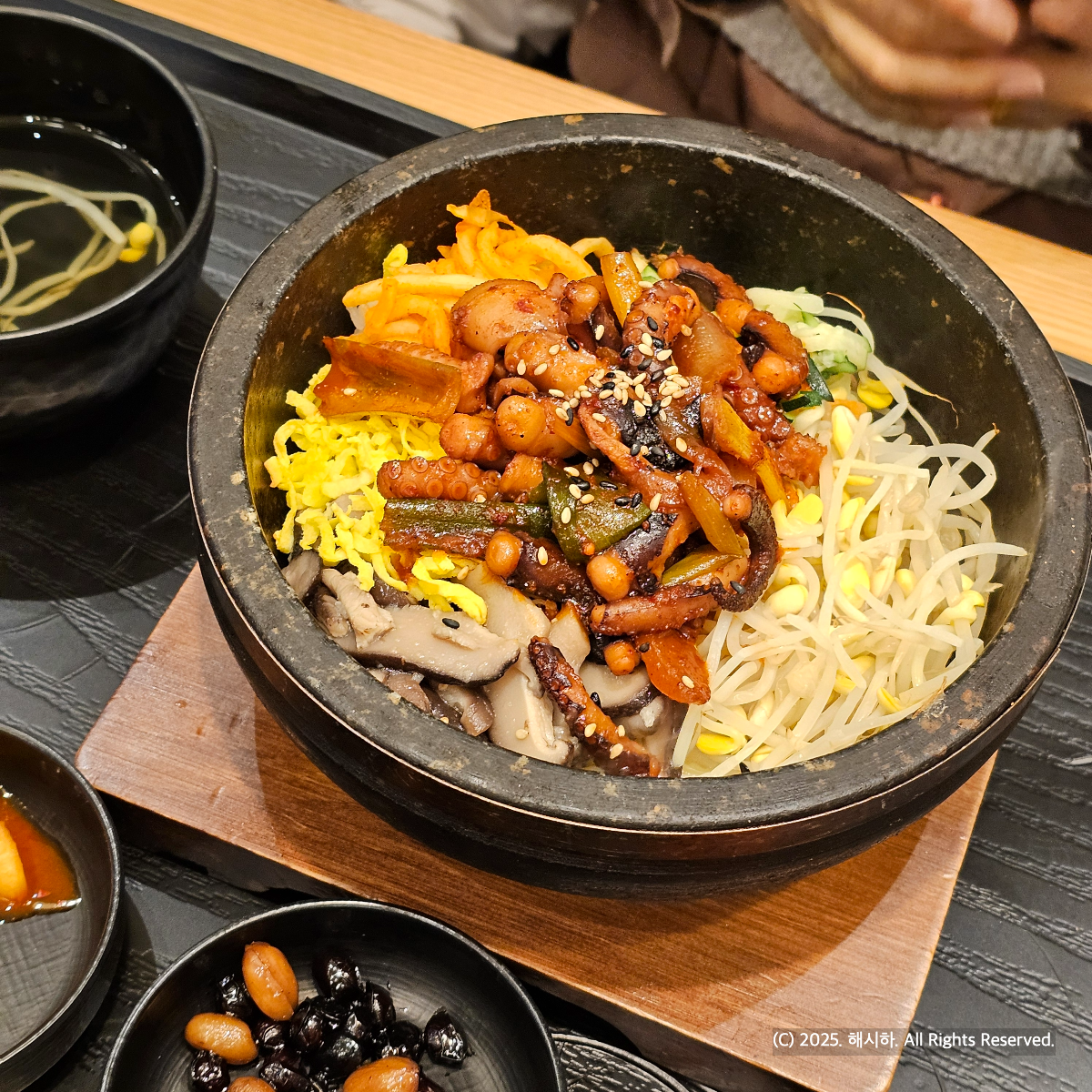 비빔밥 작은 상차림에서 낙지돌솥 비빔밥과 일반돌솥비빔밥을 시켜봤어요.