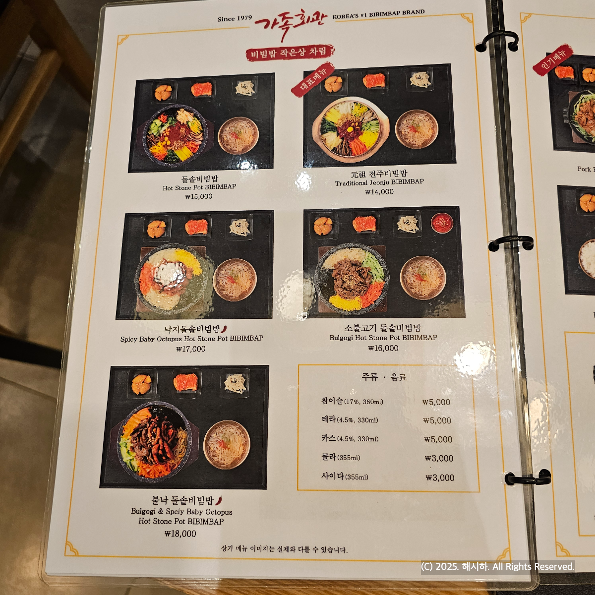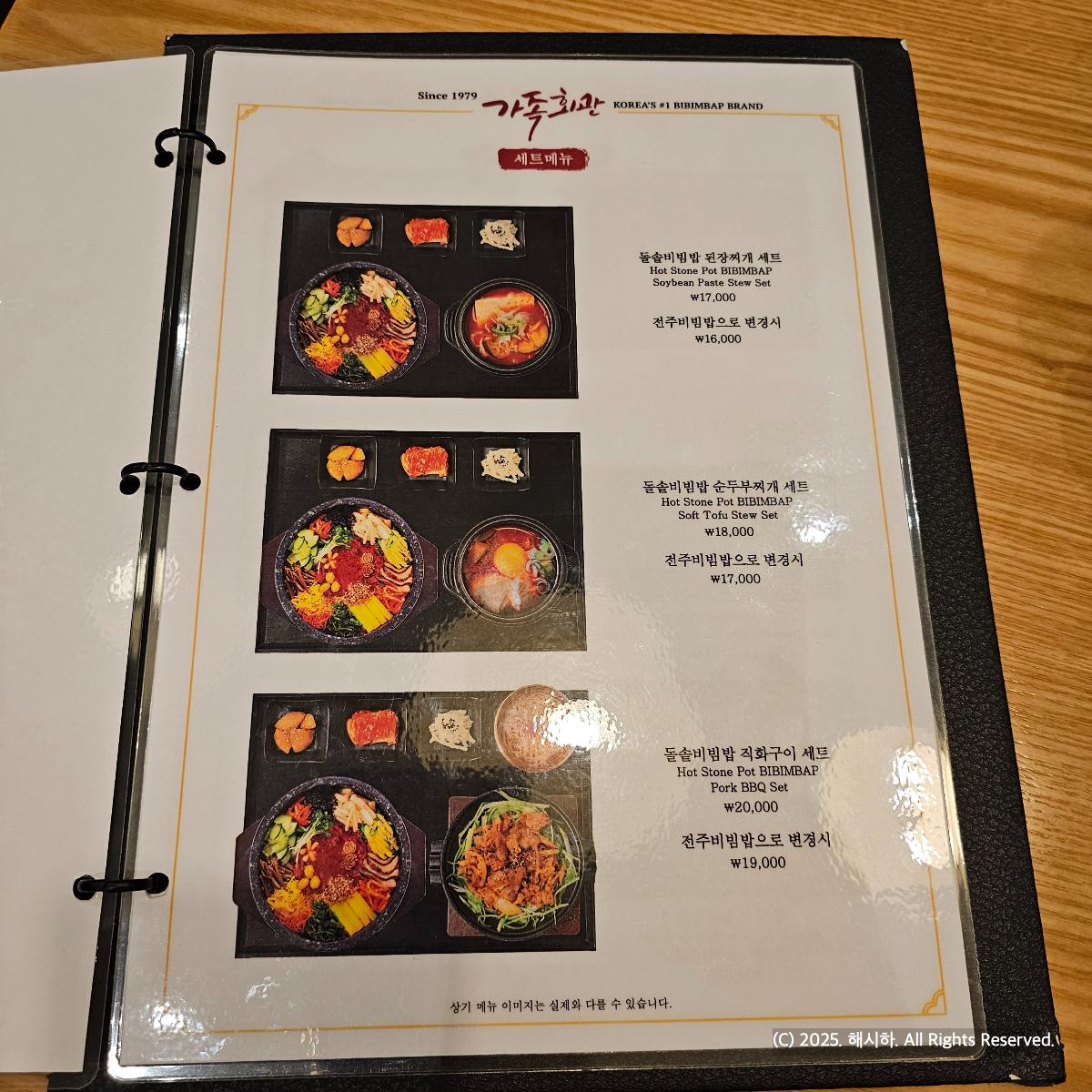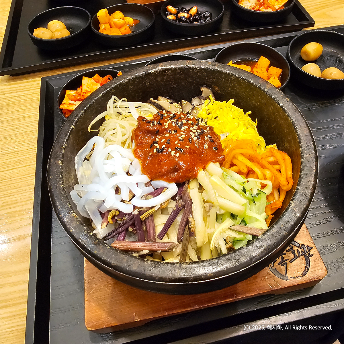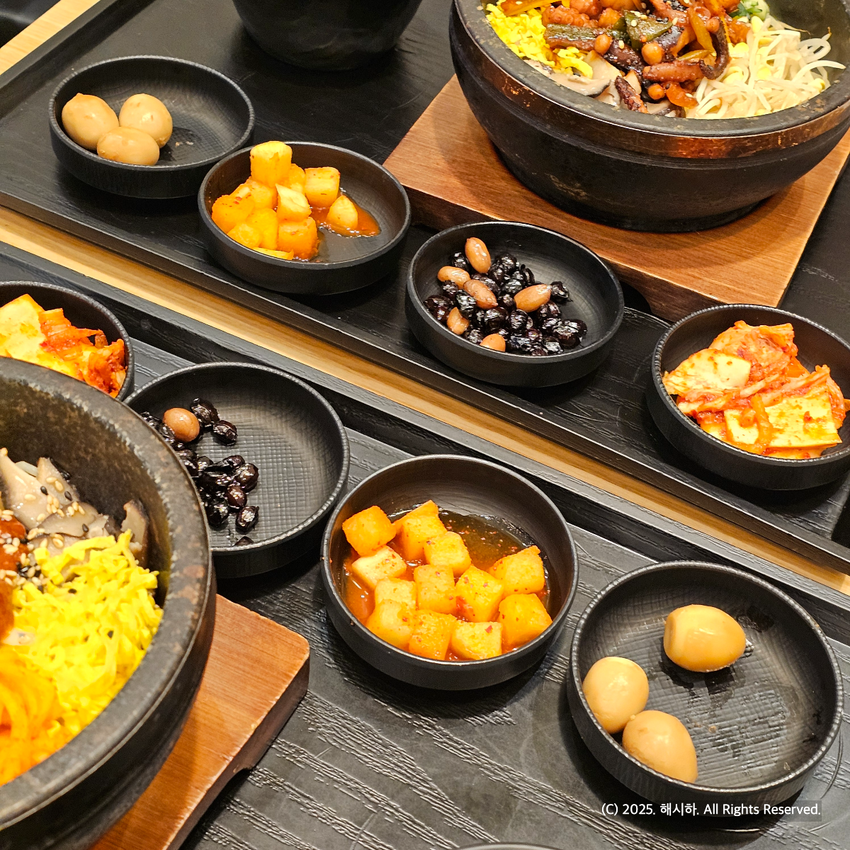 비빔밥 작은 상차림에서 낙지돌솥 비빔밥과 일반돌솥비빔밥을 시켜봤어요.