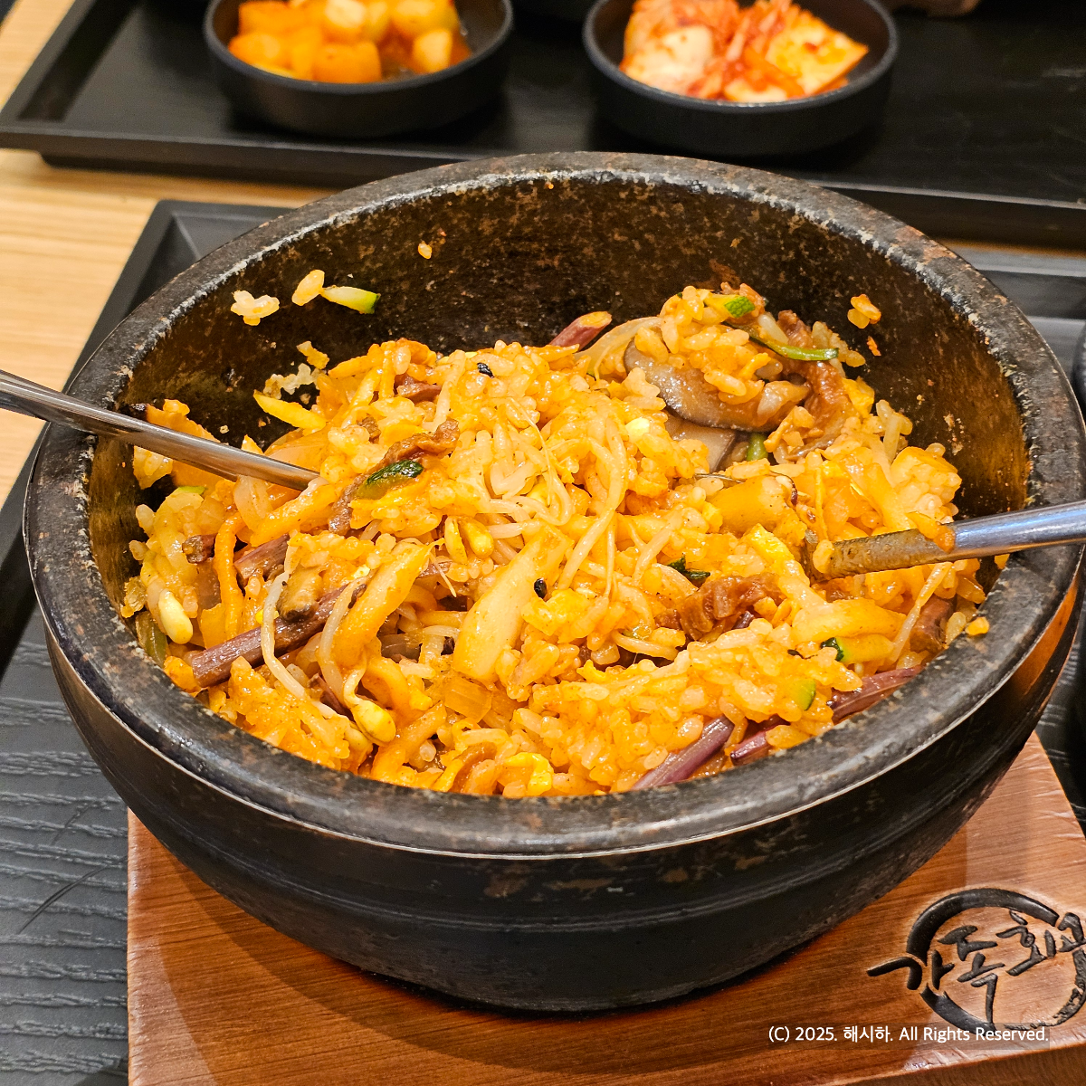 그리고 양이 진짜 많고 돌솥도 지글지글 잘 데워져서 먹으며, 시간이 지나 눌어붙은 바닥에 콩나물국 몇스푼 넣으니 막 끓을정도였어요 ㅎㅎ