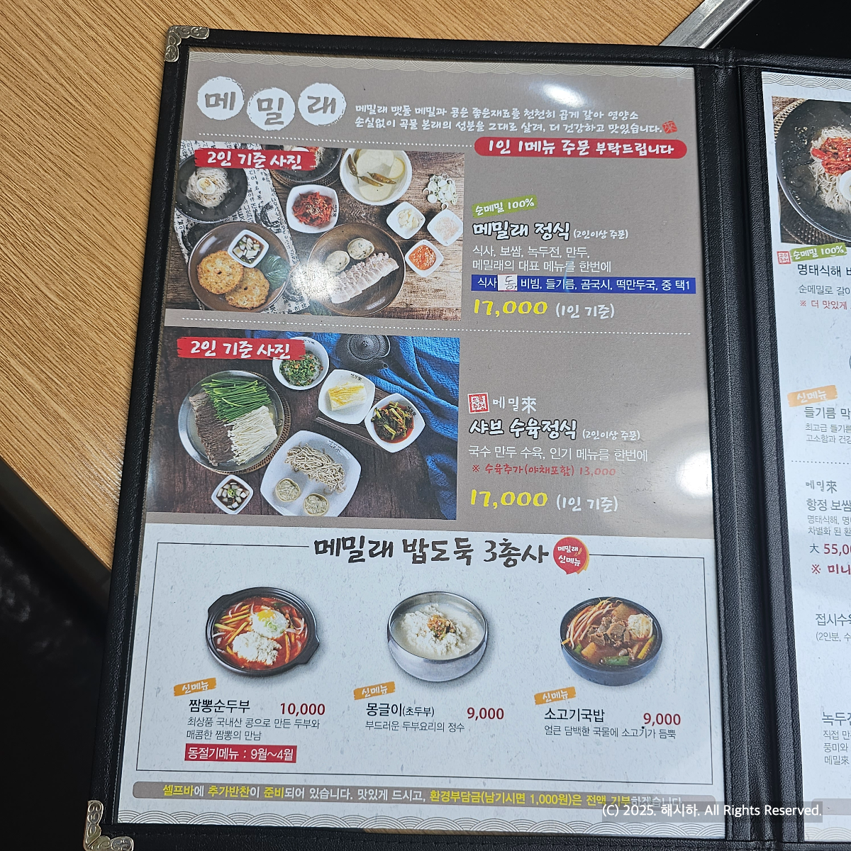 지금은 1000원정도 오른금액인데 메밀래 정식과 샤브수육정식도 팔고있어요.