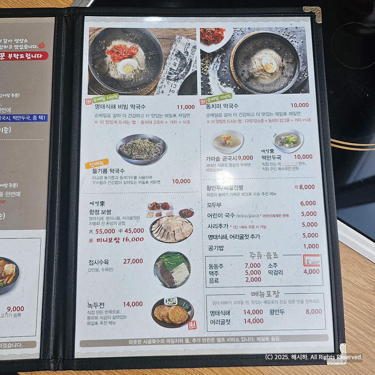 막국수, 떡만두국, 전병, 보쌈, 수육, 명태식해, 어리굴젓 추가도 가능하게 다양한걸 파는데요.