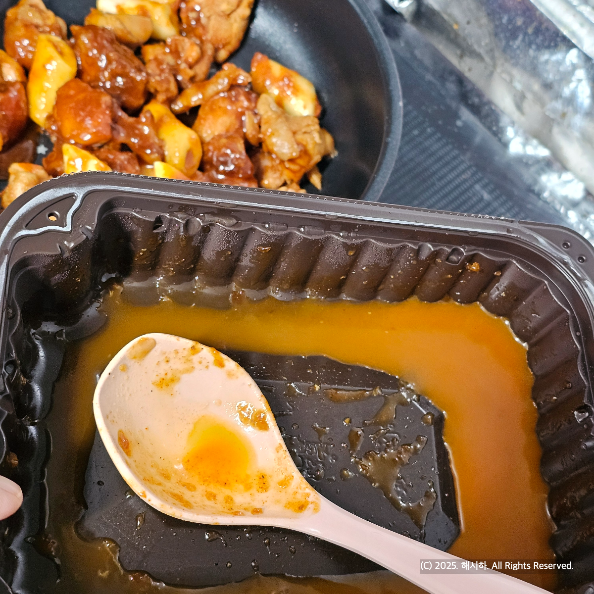 저 국자 기준으로 한국자의 물로 남은양념을 녹여서 넣어줘요.