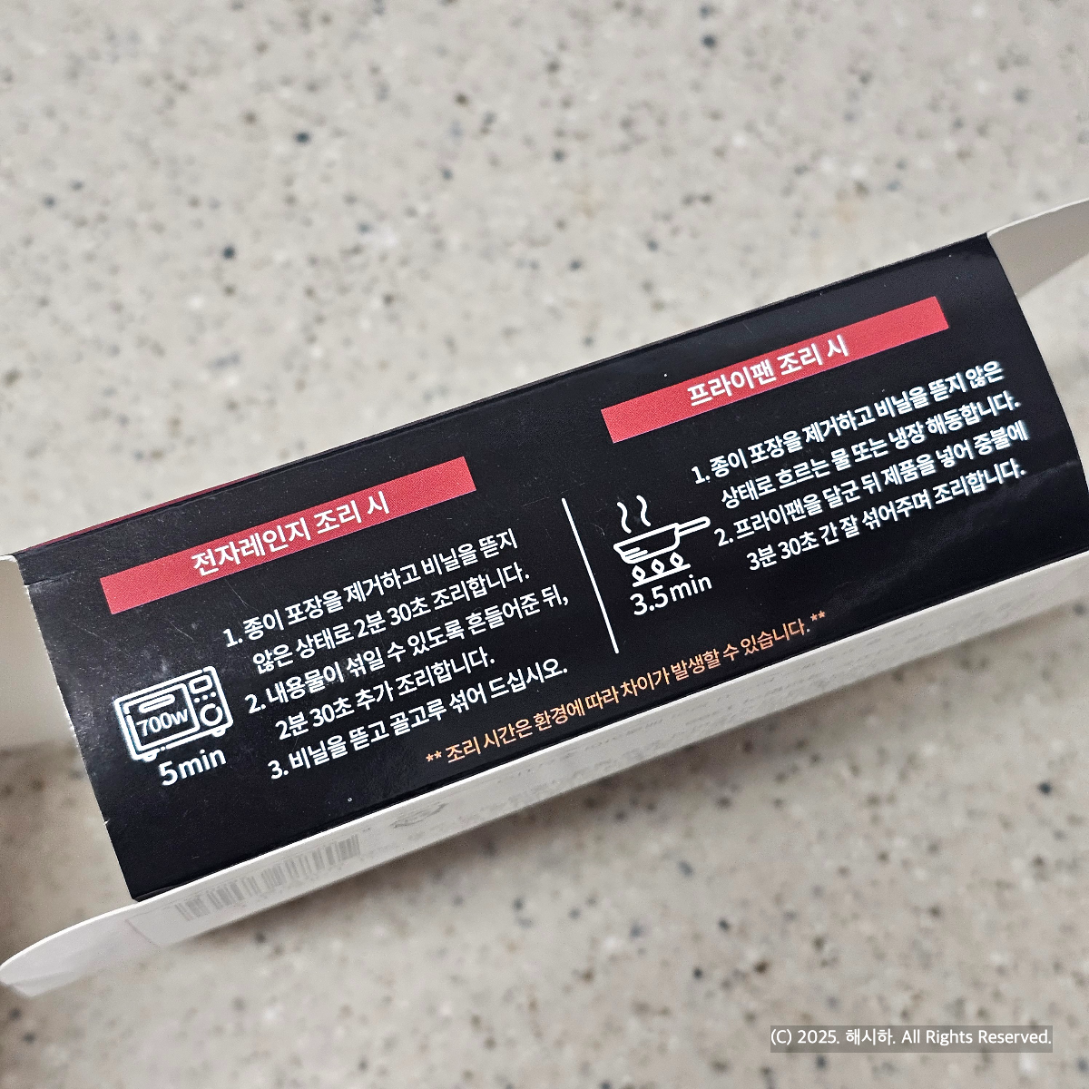 조리는 두가지로 가능한데 전자렌지 조리는 비닐이 씌워진 채로 2분30초라고 적혀있어요.