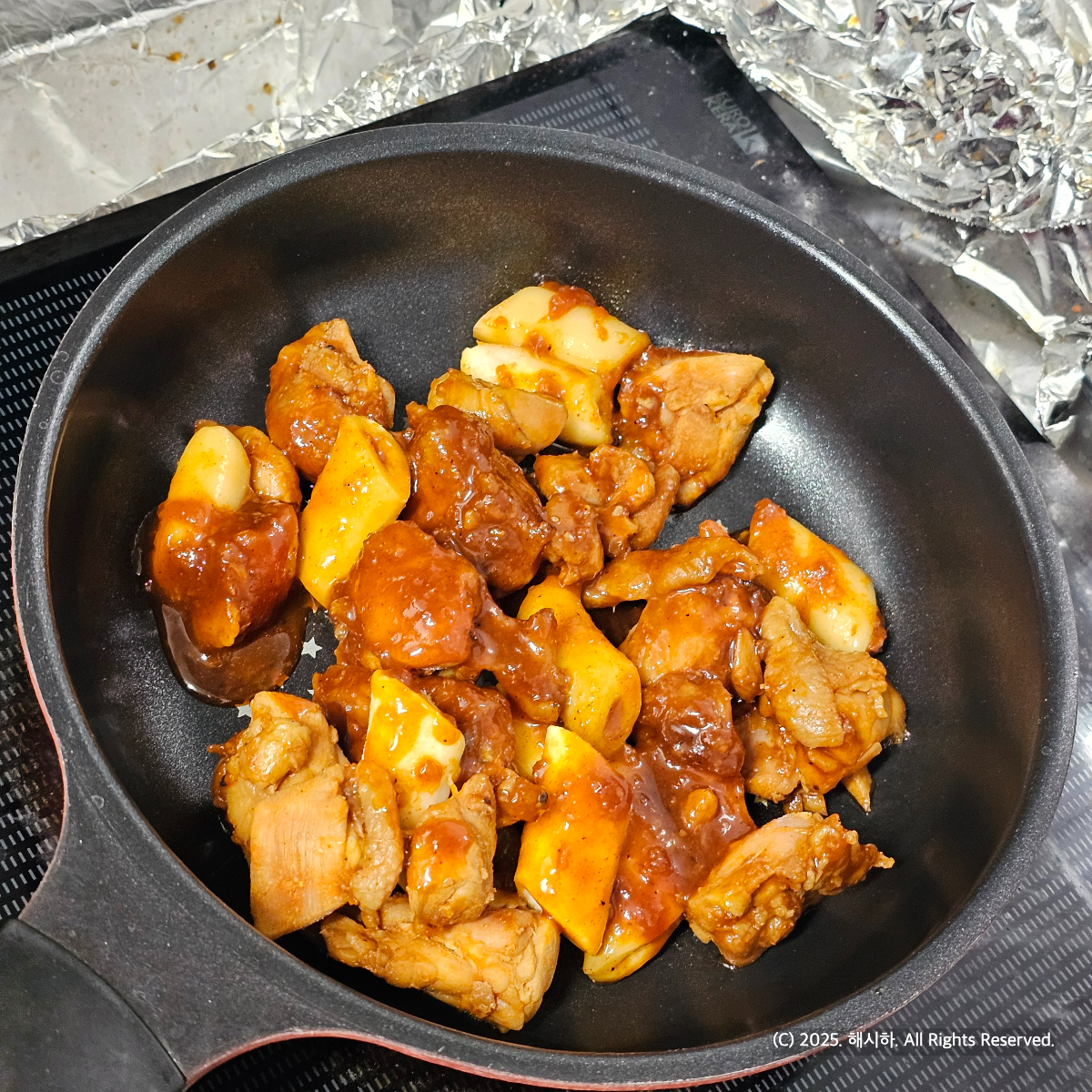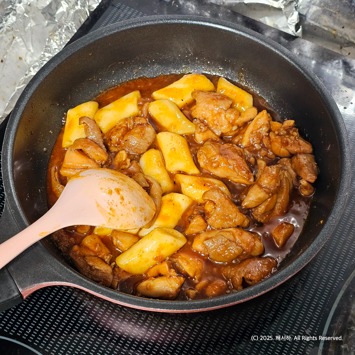 아무래도 중간불이라도 양념이 탈 것 같아서..