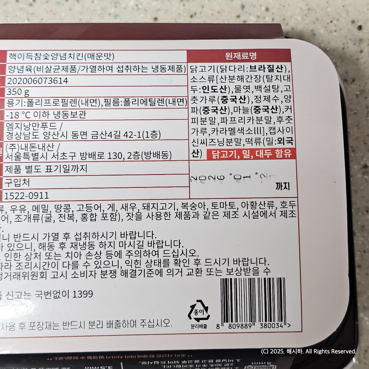 브라질산 닭다리살에 350g의 양념닭고기.