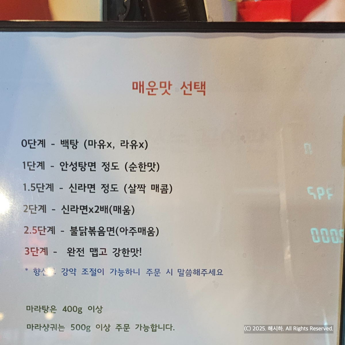 이때 주문서를 보니 마라탕 1.5단계로 시켰던 것 같네요 ㅎㅎ