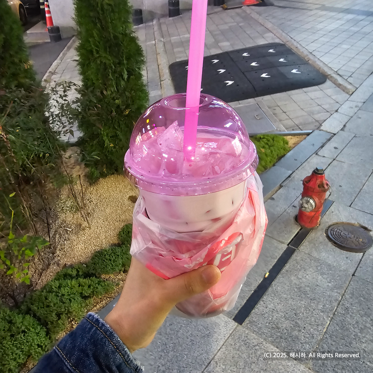 이날이 24년 10월 31일이었는데 마음은 무조건 아메리카노인데ㅠㅠ버스를 타야해서 카페인이 없는 딸기라떼로 사먹기로해요.
