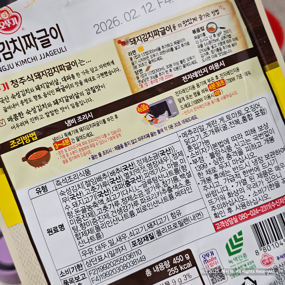 2인분이라고 써진건 언제나 1인분이지만ㅋㅋㅋ그래도 제가 컨디션 안좋은 김치로 짜글이 만드느니 이게 훨씬 낫고, 급할때 정말 편리하고 맛도 이만하면 좋아서 오뚜기몰 뭐사지 고민되실때 행사템으로 추천드려요.