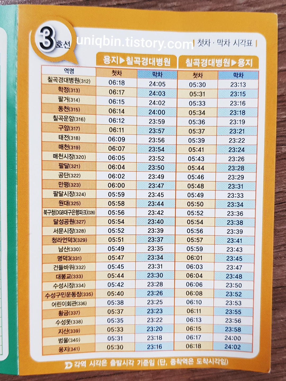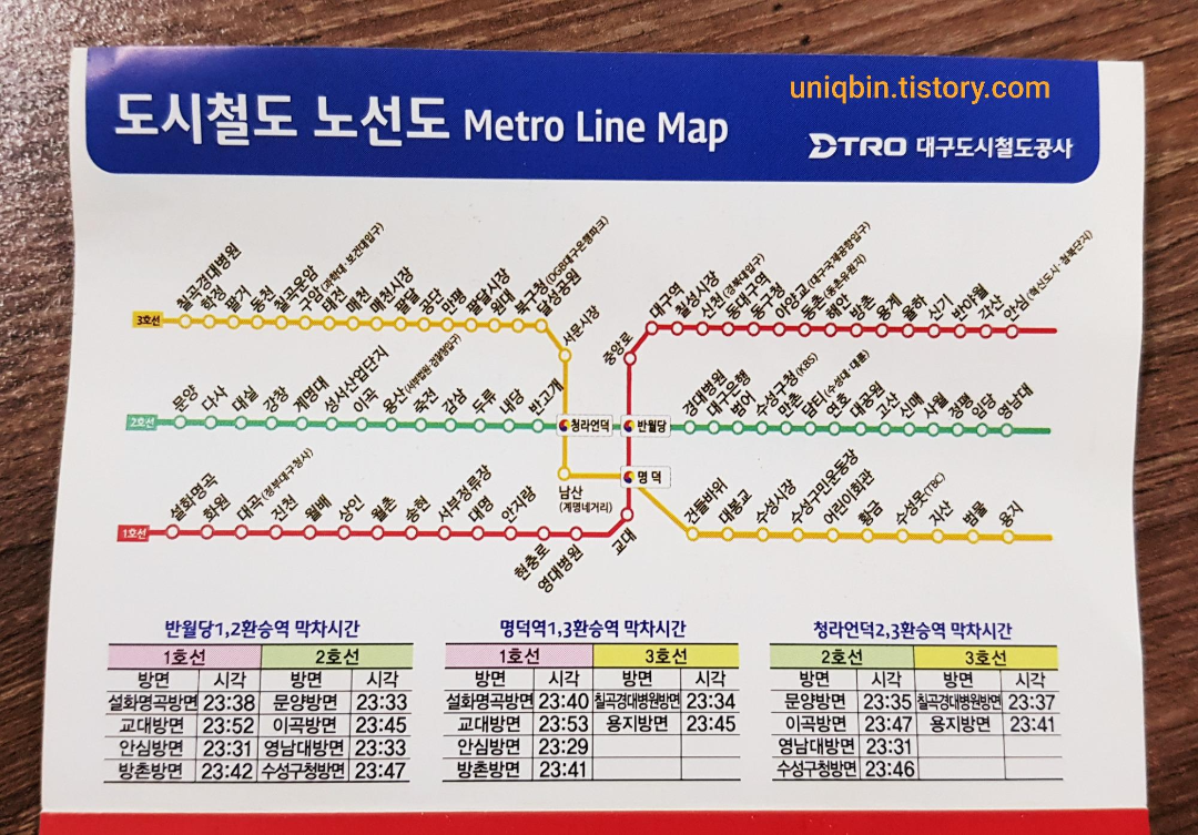 저는 2호선 반월당역에서 문양방면으로 가는 막차가 궁금했었어요. ㅎㅎ그리고 이 사진은 다 이해한 뒤에 보았기 때문에 지금보니 왜 이해못했을까 싶을 정도예요. ㅋㅋㅋ