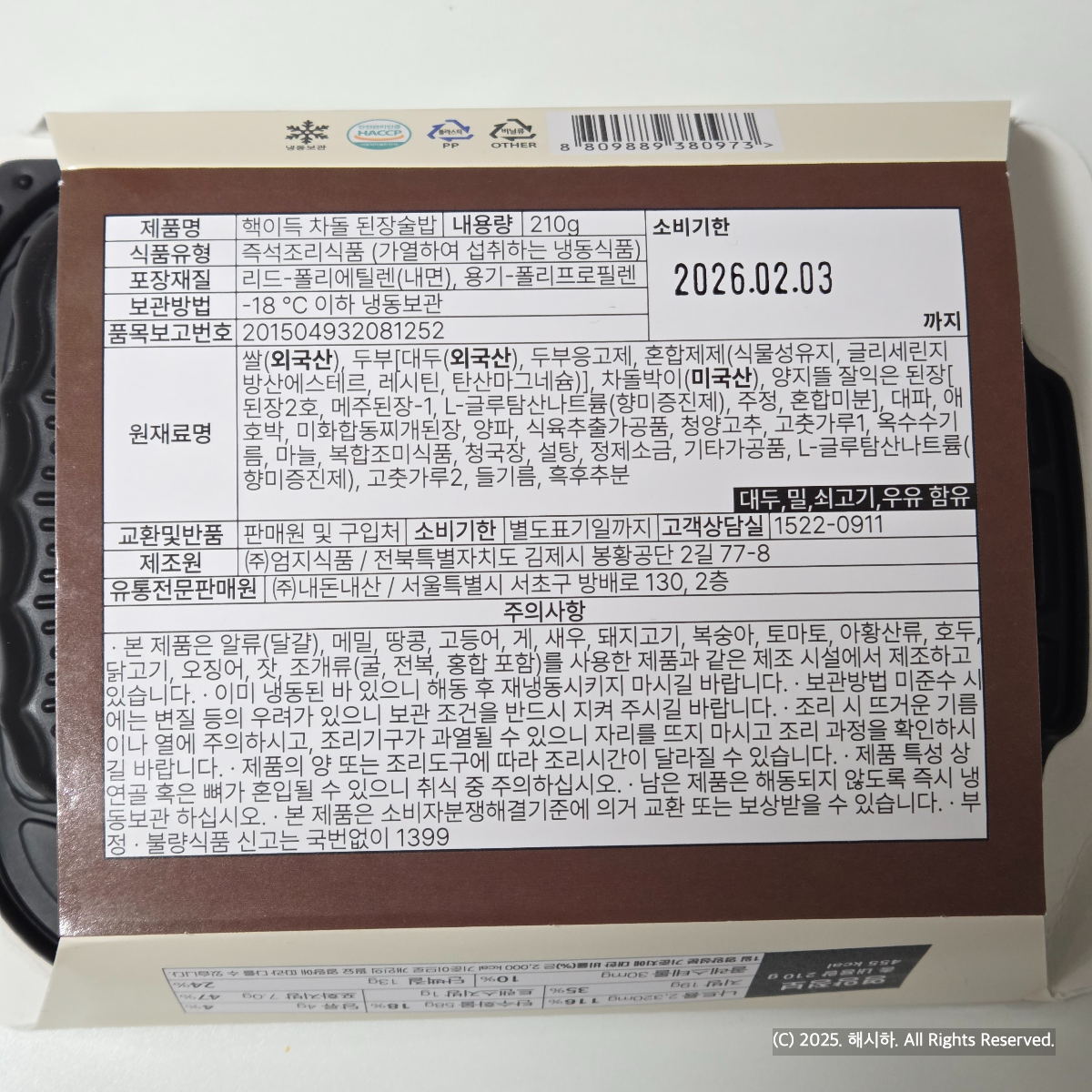 남편에게 먹어보랬더니 본인이 생각한 딱 그런 된장술밥에 밥만 1인분 추가로 더 말아서 먹고, 제가 더사둘까 물어보니 더 사도 되겠다고해서 뿌듯했던 후기였는데 쌀,두부의 대두 원산지만 자세히 알면 더 시킬텐데..ㅠㅠ참고가 되셨길 바랍니다.