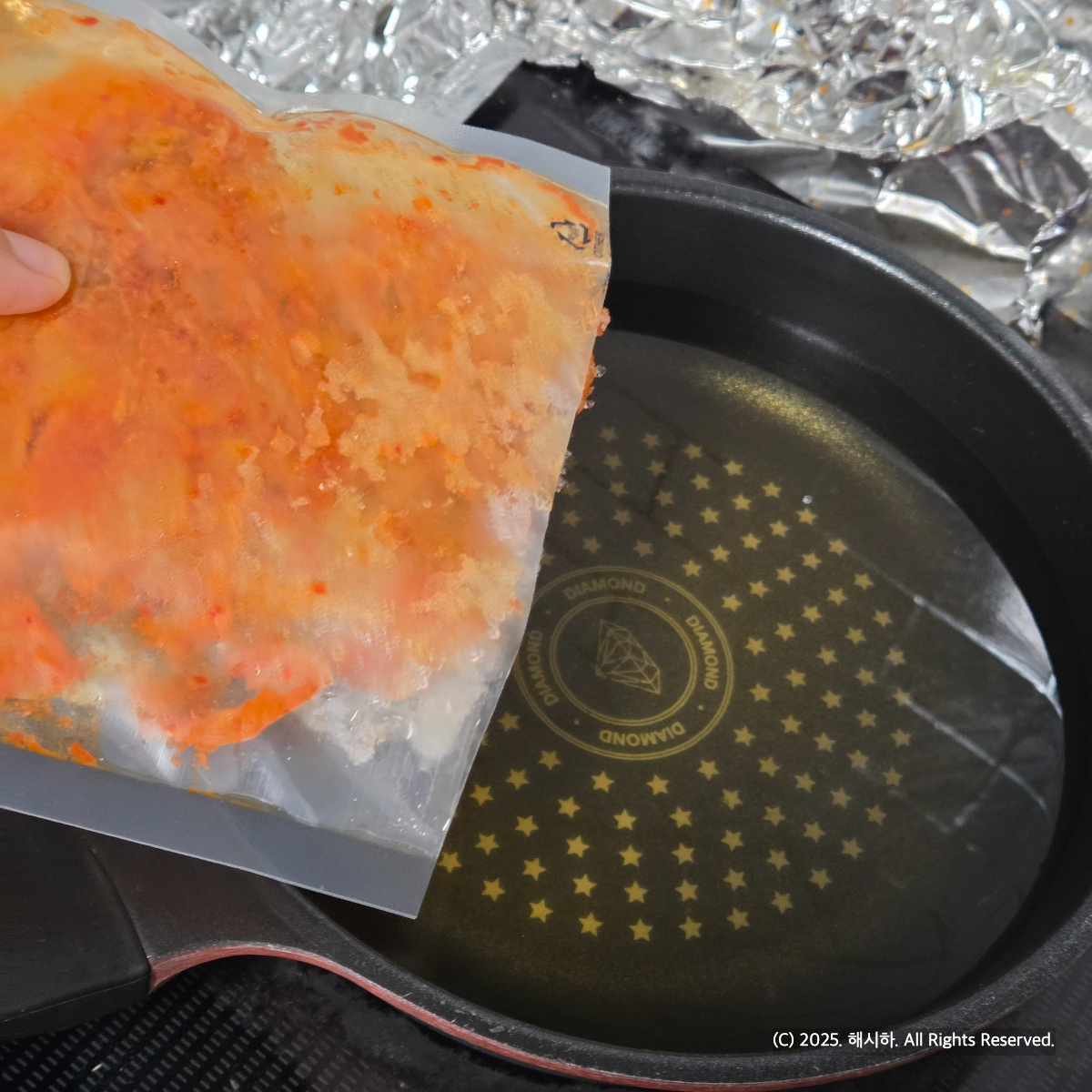 근데 원래는 천천히 다른날 먹어보려했는데, 이미 저녁에 김치 칼국su를 먹은뒤인데도 꽉찬 냉동실 부피를 줄이려고 야식처럼 먹게 됐어요ㅋ
