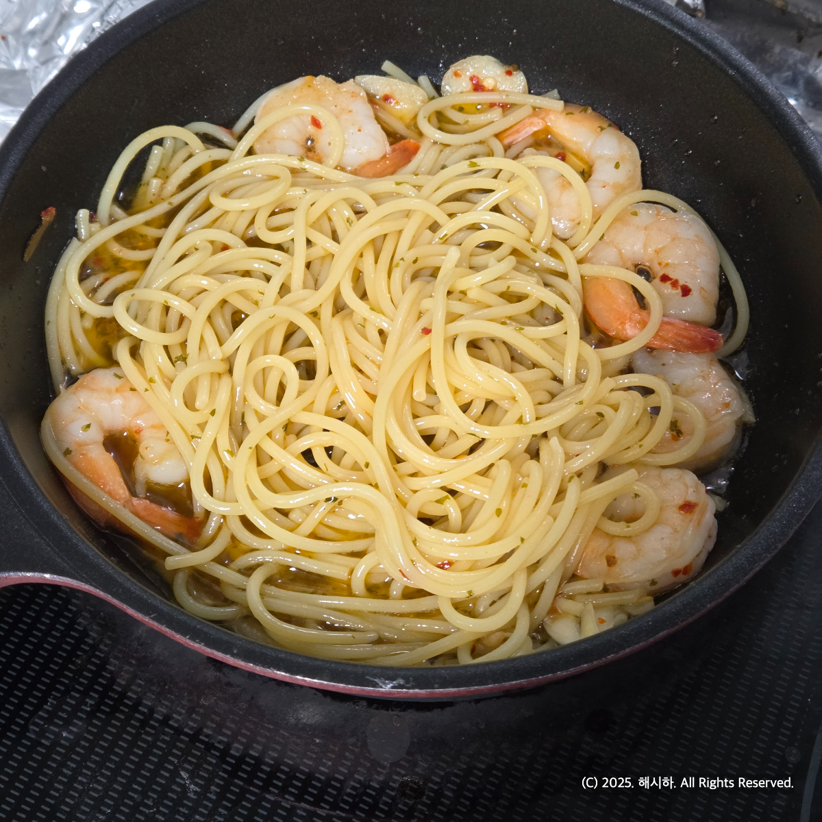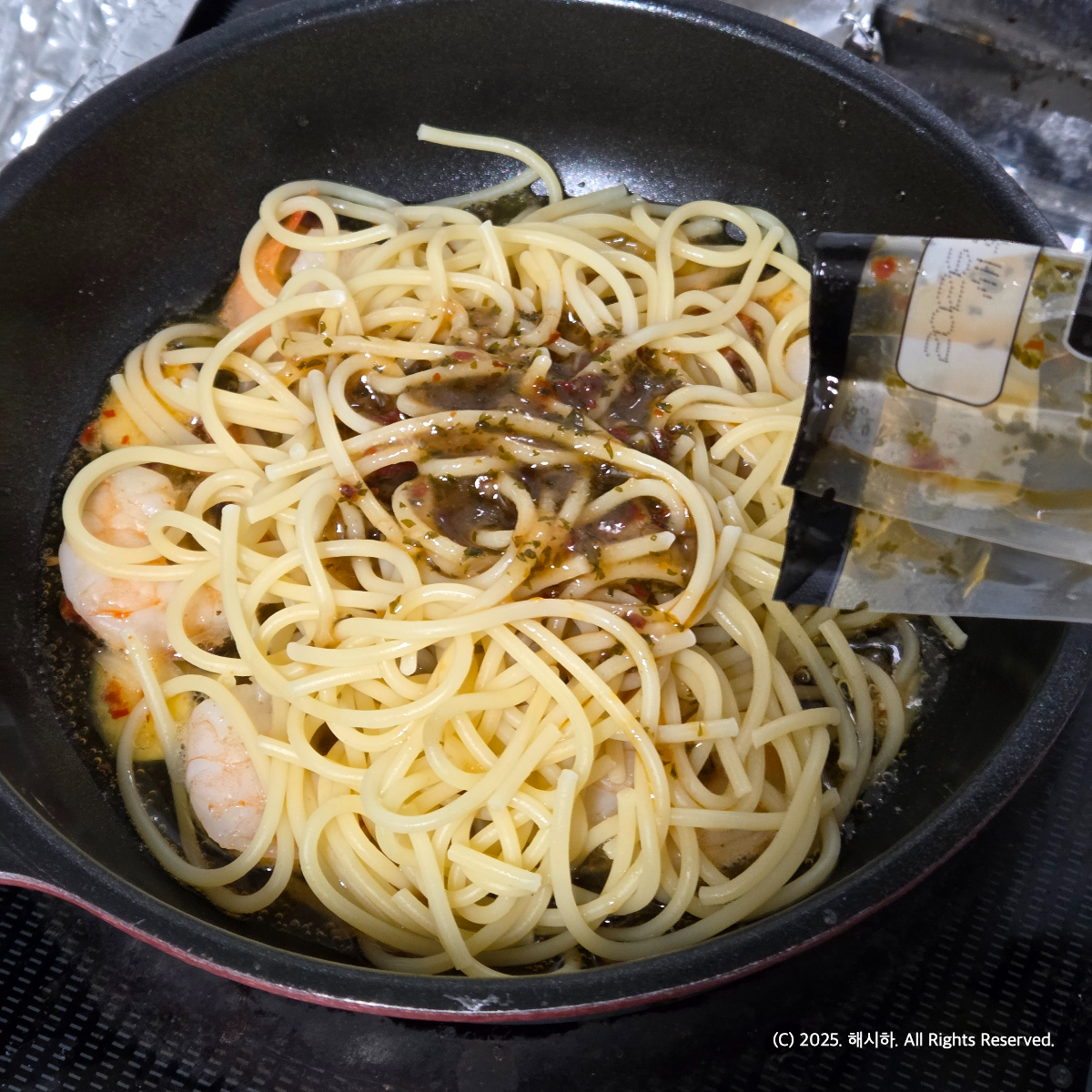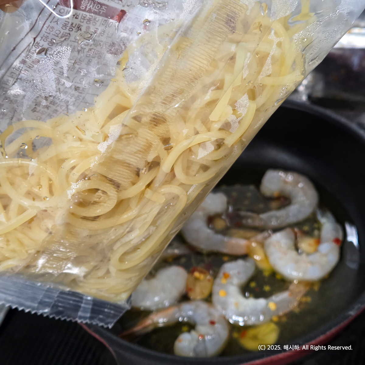 새우가 중약불에서 주황빛을 보이면 면을 넣어주래요.