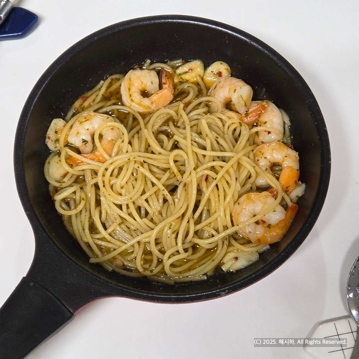 숙면 이태리산에 베트남산 흰다리새우와 콩기름은 어디인지 모를 외국산, 마늘중국산, 올리브유는 스페인산으로 구성되어있는데요.