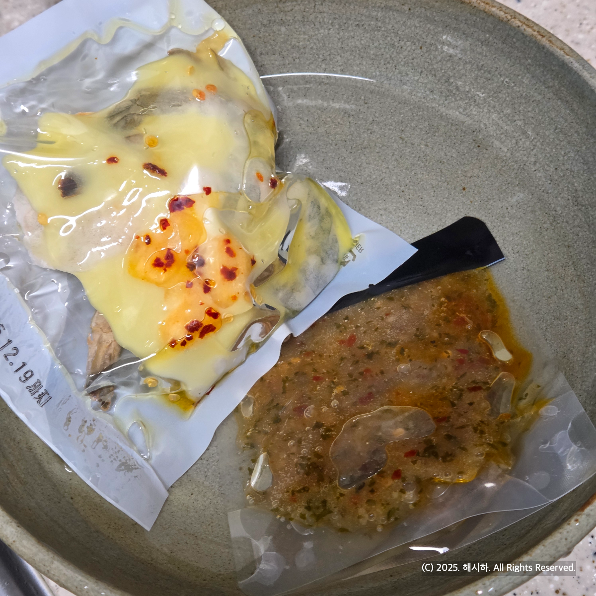 새우와 소스들 급하게 미지근한 물에 해동시키고요~