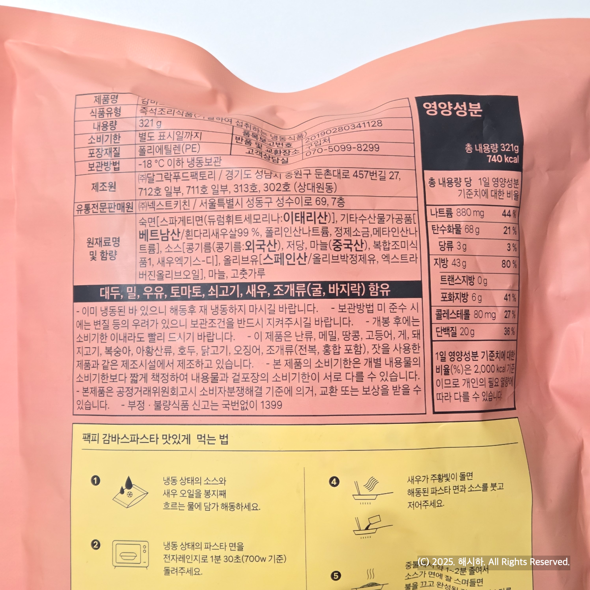 냉동제품이고 321g에 740칼로리.