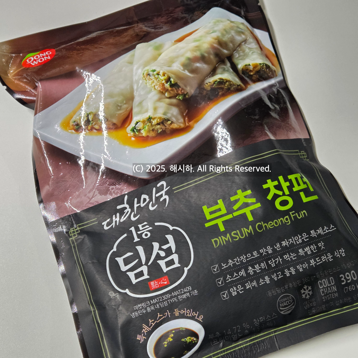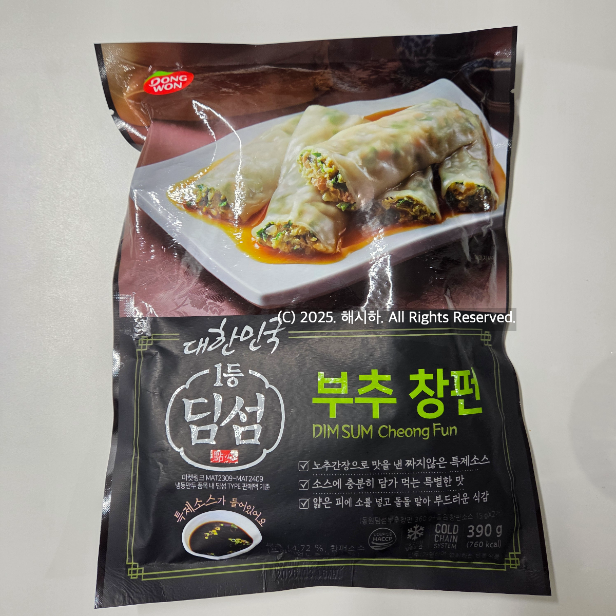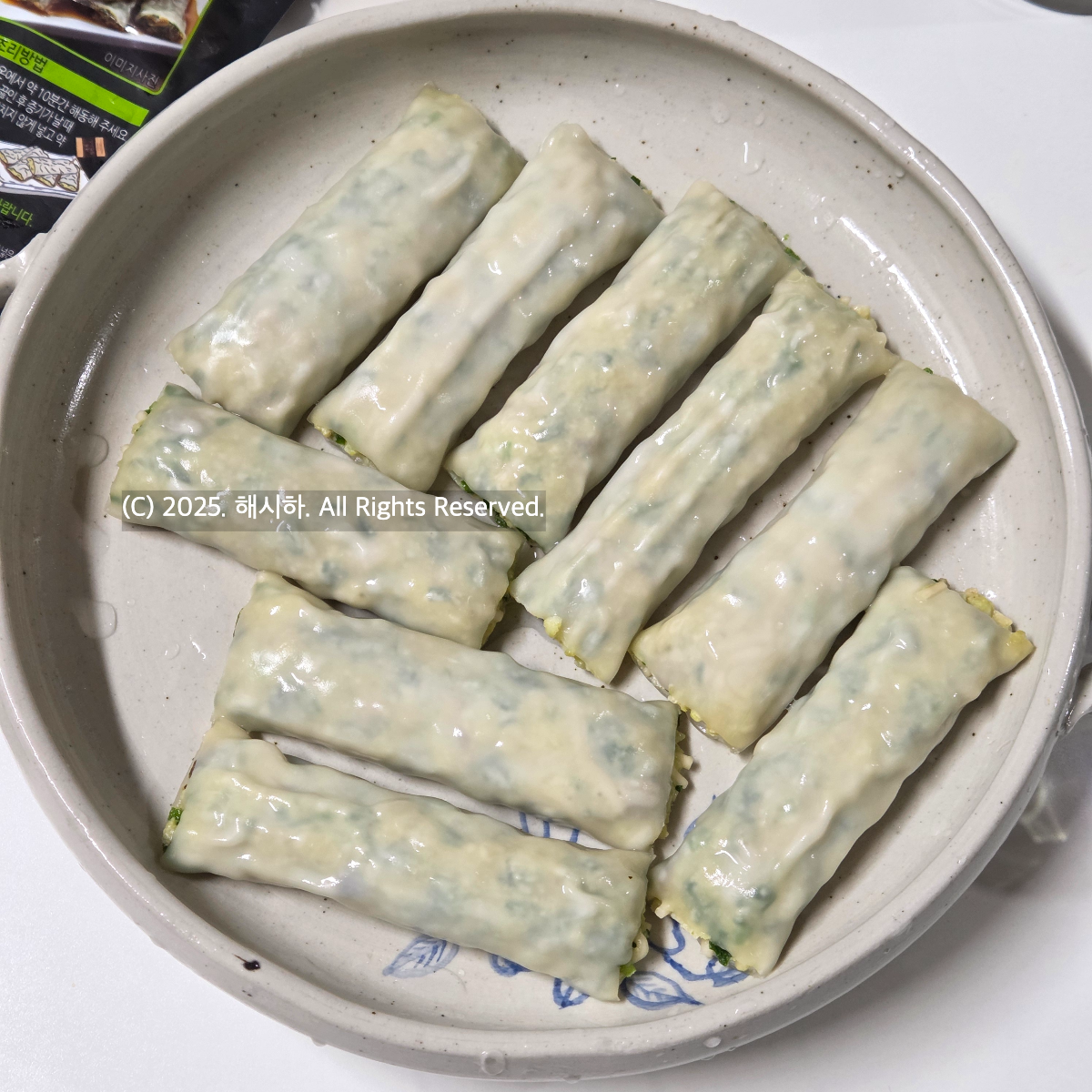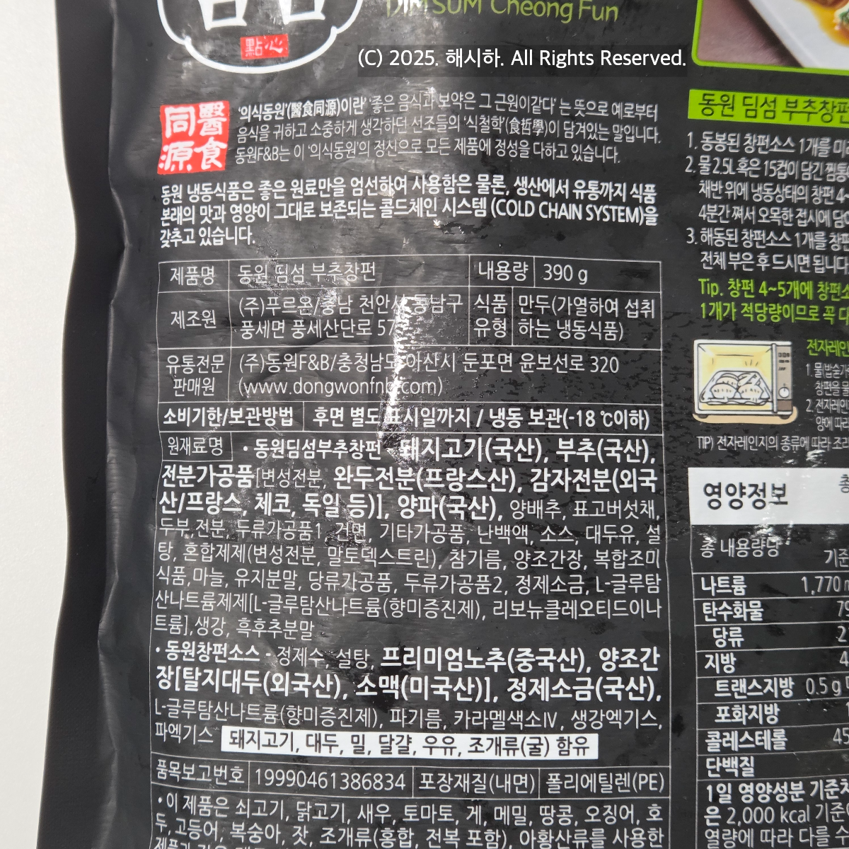 물 2.5리터 혹은 15컵이 담긴 찜통에 물을 끓인후 증기가 날때, 채반위에 냉동상태의 창펀 4~5개를 겹치지 않게 넣고 약 4분간 쪄서 오목한 접시에 담는방법으로 1봉지에 2개의 소스를 뿌려먹으면 되는데요~