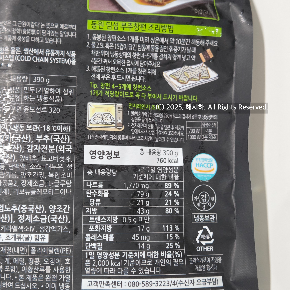 동봉된 창펀소스 1개를 미리 상온에서 약 10분간해동하고