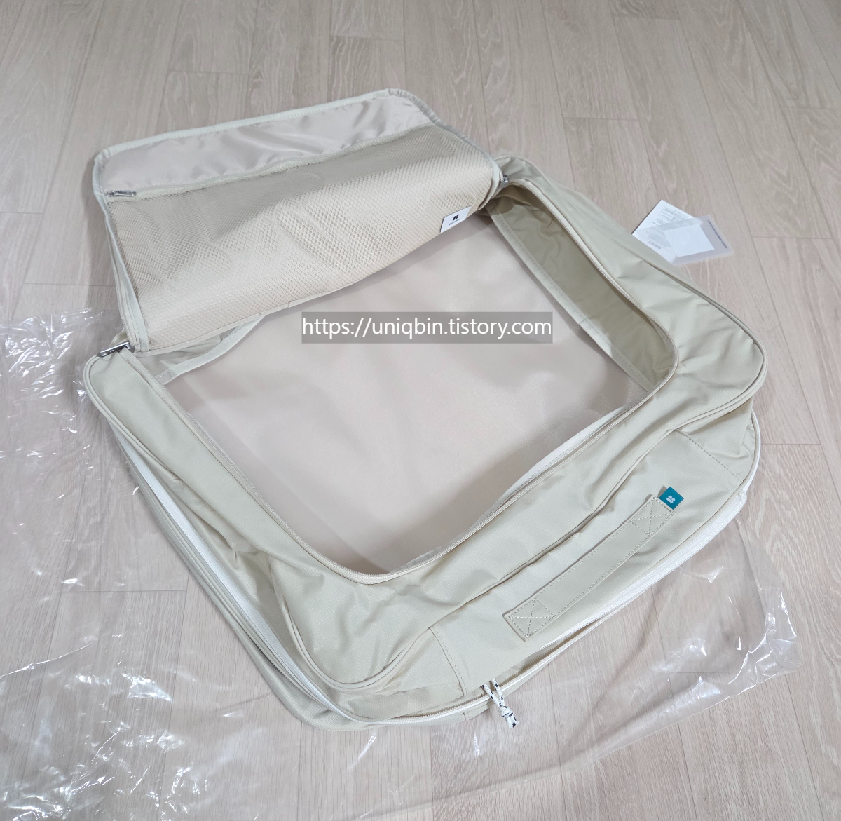 아까 위에 옆지퍼 다 열린상태의 부피였는데 이제 줄어든거 느껴지실까요??