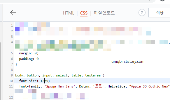 이것역시 CSS에서 변경해줬는데요~ 저는 본문1이고 뭐고 일단 폰트사이즈가 12로 되어있었어요.ㅋㅋㅋㅋㅋㅋㅋㅋㅋ문제가 너였구나 싶더라구요. ㅋㅋㅋㅋ 쓸때는 분명 정말큰데 올리고나면 PC기준 글씨가 그렇게 작게 보일 수가 없었거든요.