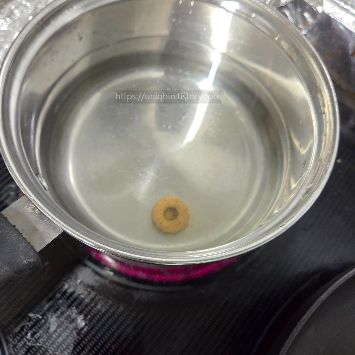 근데 이 백설코인의 장점은 가운데 원형을 뚫어 끓는물에 더 빠르게 녹아 1분이면 진한 육수를 만들 수 있다는건데요~