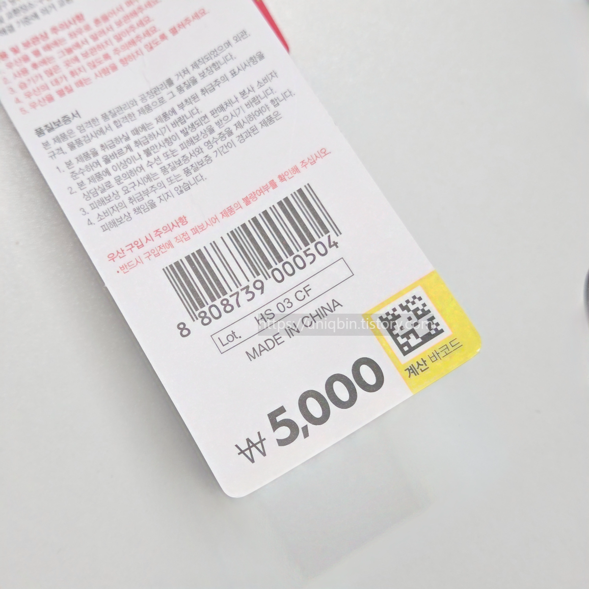 생산은 중국제품이고 5천원.