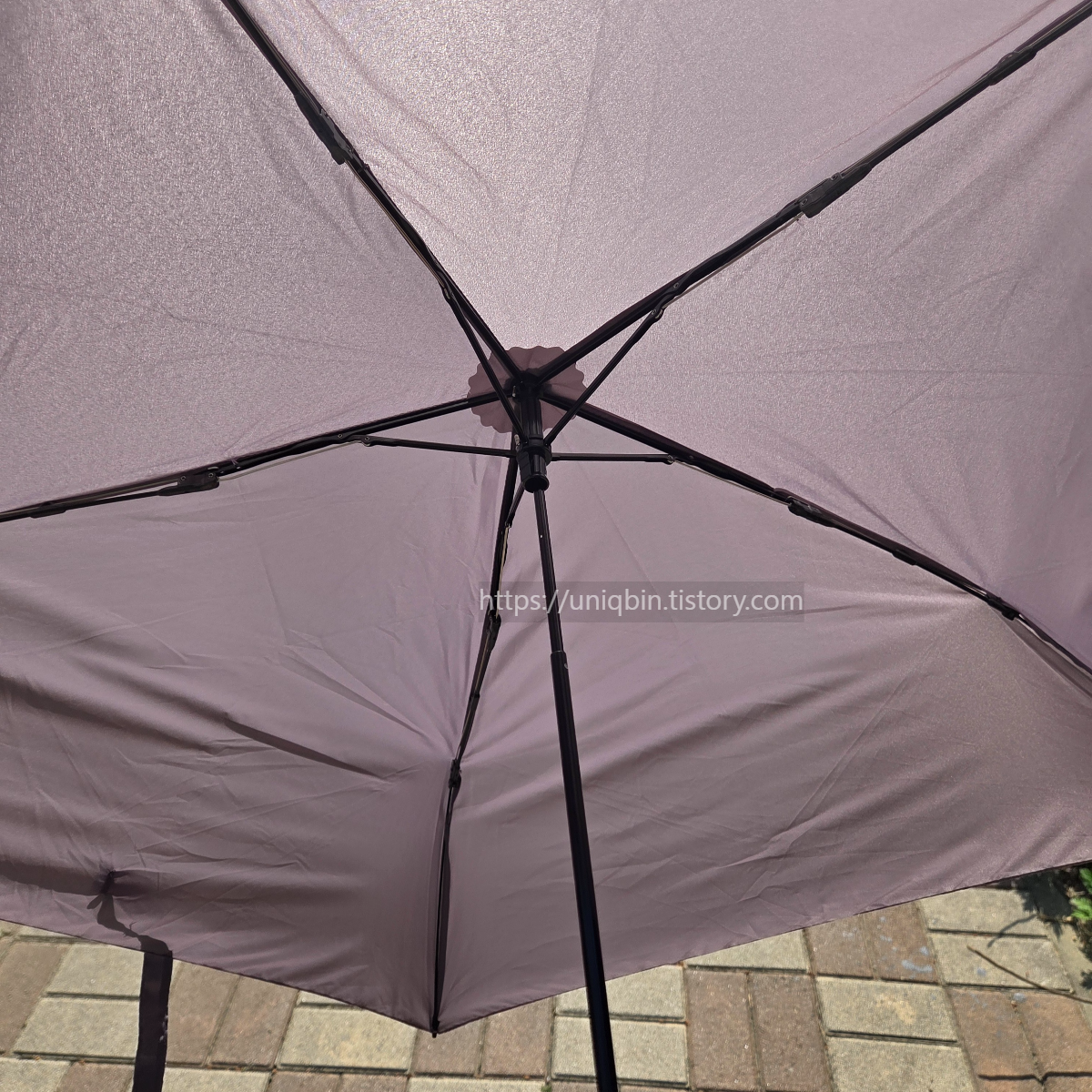 그럼 양산용으론 어떨까~써보니 바람안부는날 양산으로 진짜 너무 좋네요. 색이 이래서 솔직히 자외선차단 되겠어? 햇빛 잘 막아줄까 의심했는데 햇빛이 적은 구간에서 잠시 접고있다가 따가워서 바로 펼쳤더니 살것 같더라구요 ㅋㅋㅋ