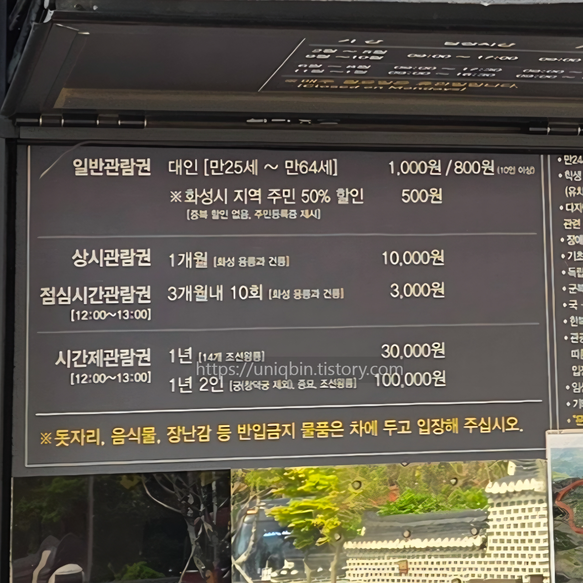 시간제 관람권은 1년 14개 조선왕릉 기준 30,000원.
