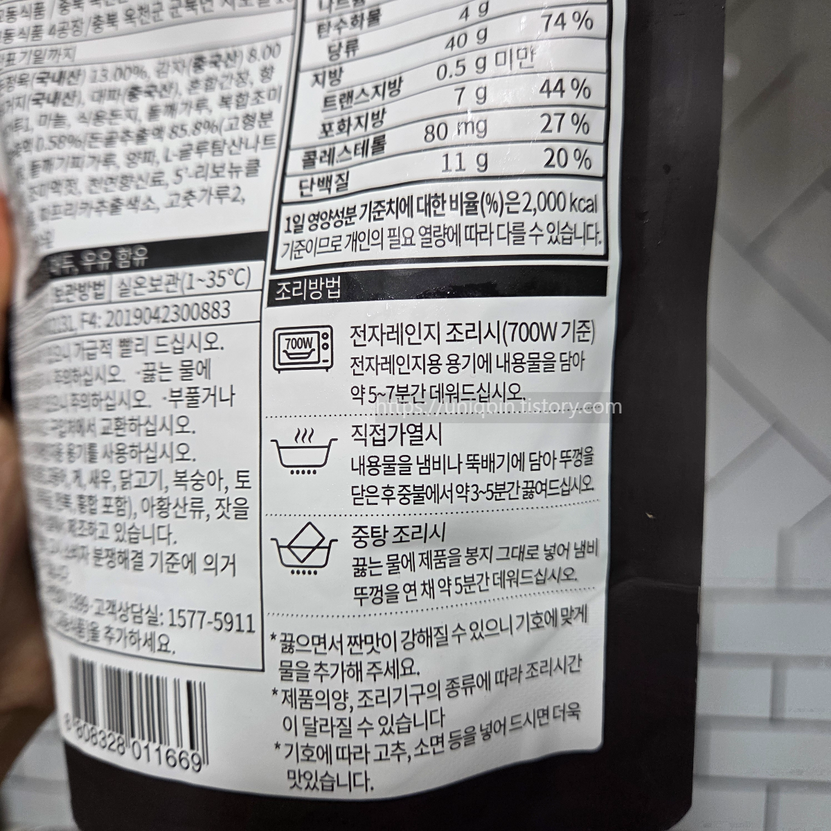 교동 순살감자탕 영양정보와 조리법 적혀있는데요.