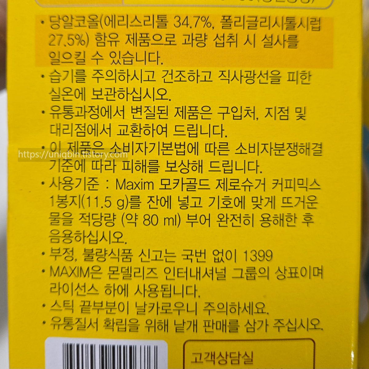 근데 저는 당장 카페인도 신경써야하고 나중을 위해 당도 신경써야해서 맥심 제로슈거를 알게되고 바로 삽니다.