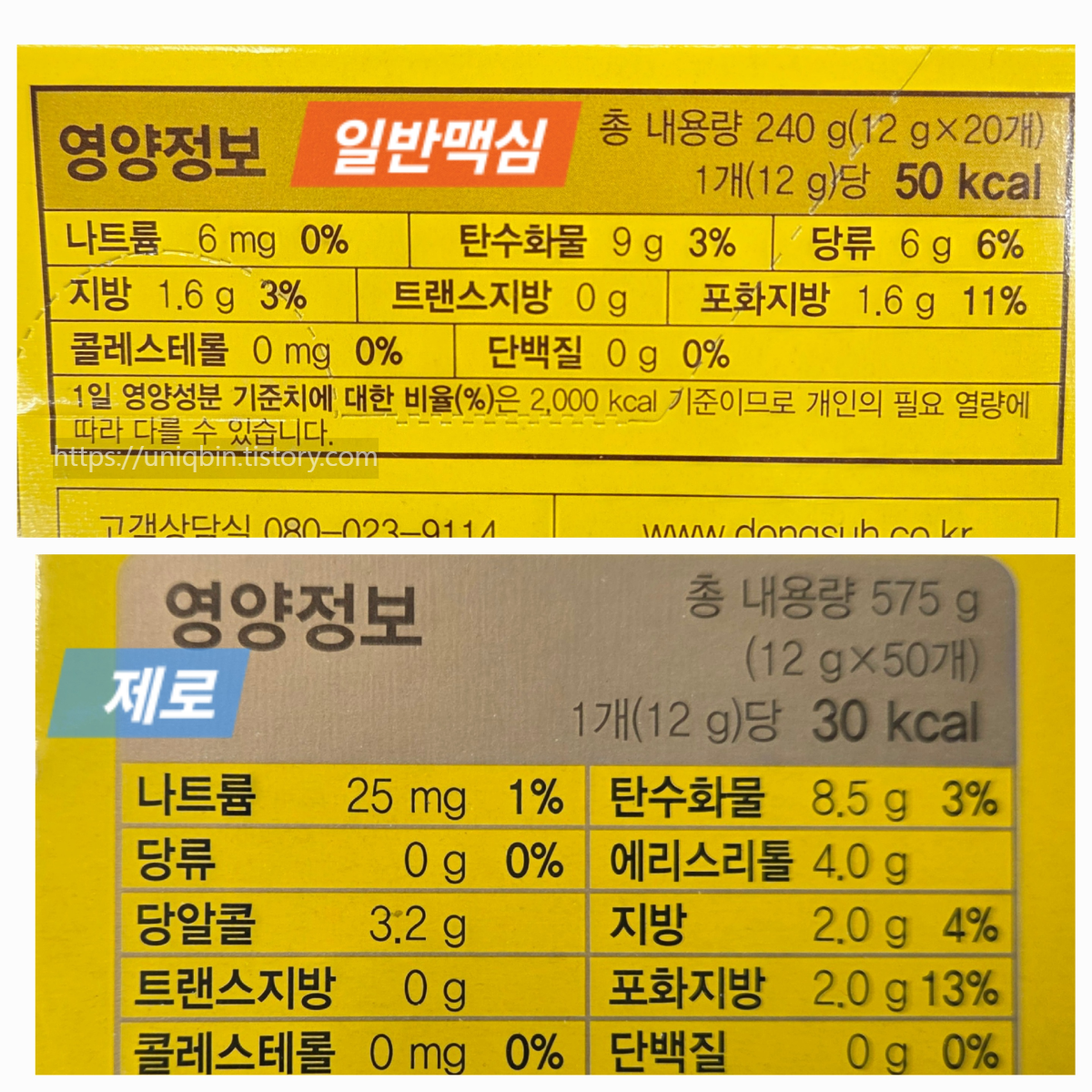 당연한거지만 한개당 영양정보도 확연하게 달랐는데