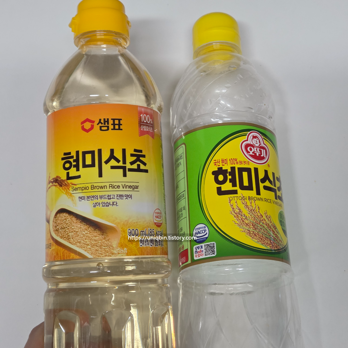 안녕하세요.오늘 리뷰는 집에있던 오뚜기 현미식초를 다 먹어가서, 새로 주문한 샘표 현미식초를 사본김에 두가지 식초를 비교해볼까해요.