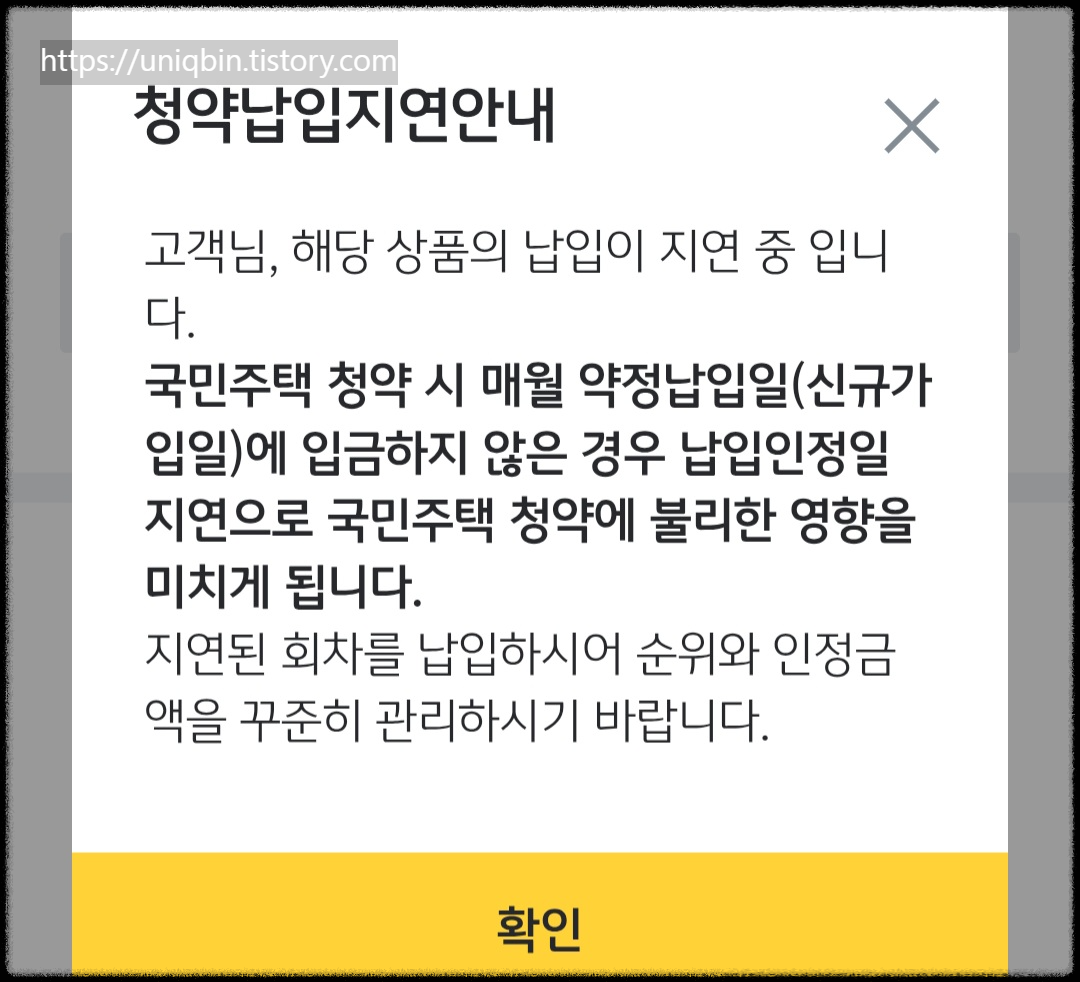 한번도 밀리지 않은 내가 청약납입을 빼먹었다고??