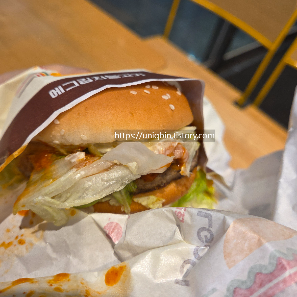 뭔가 데리버거에 김치가 들어간 느낌인데 김치 정말 잘 어울리고요? 블랙페퍼와 둘중 고르기 힘든맛!!